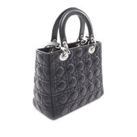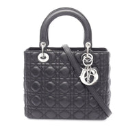 Dior Lady Dior Medium Black Cannage Lambskin Silver