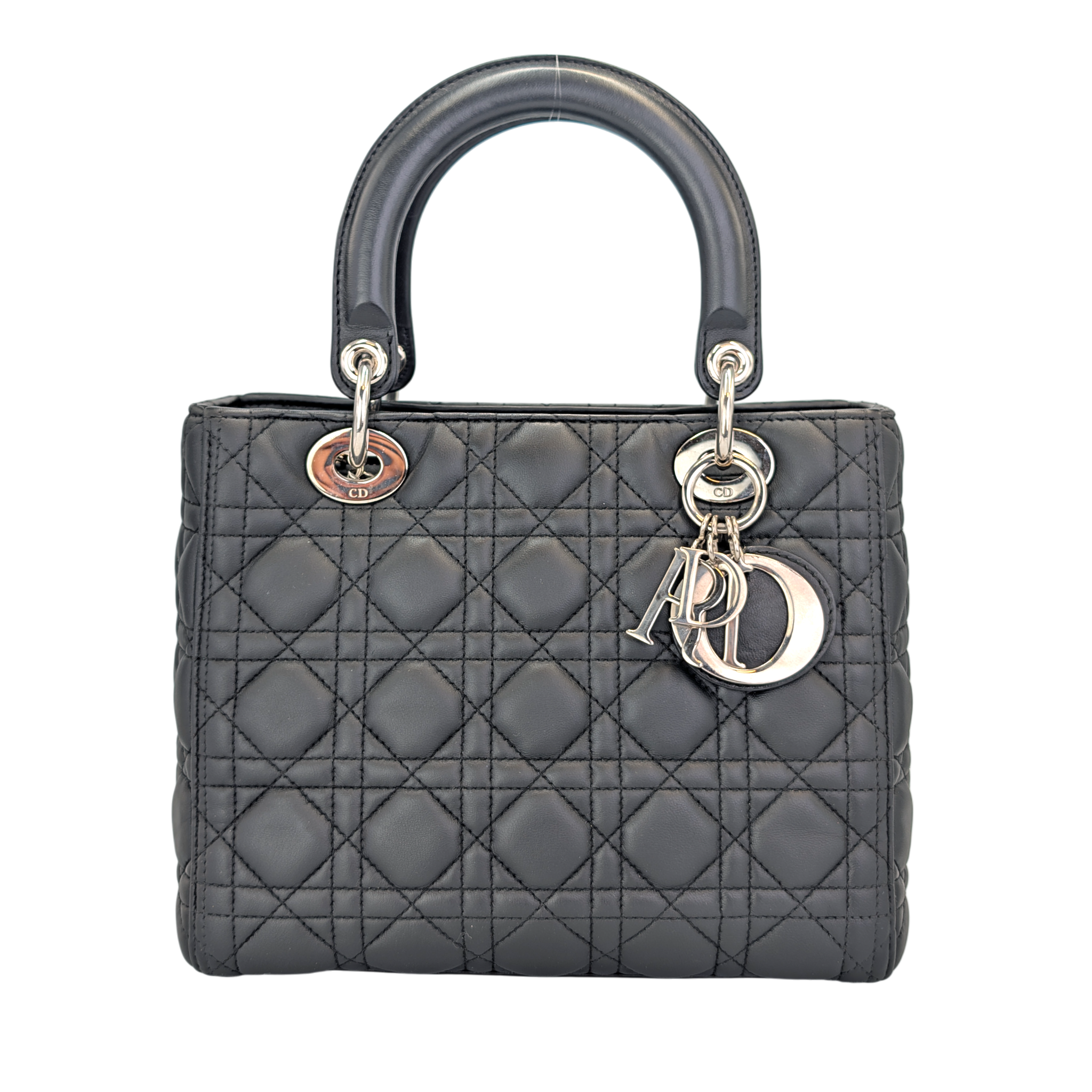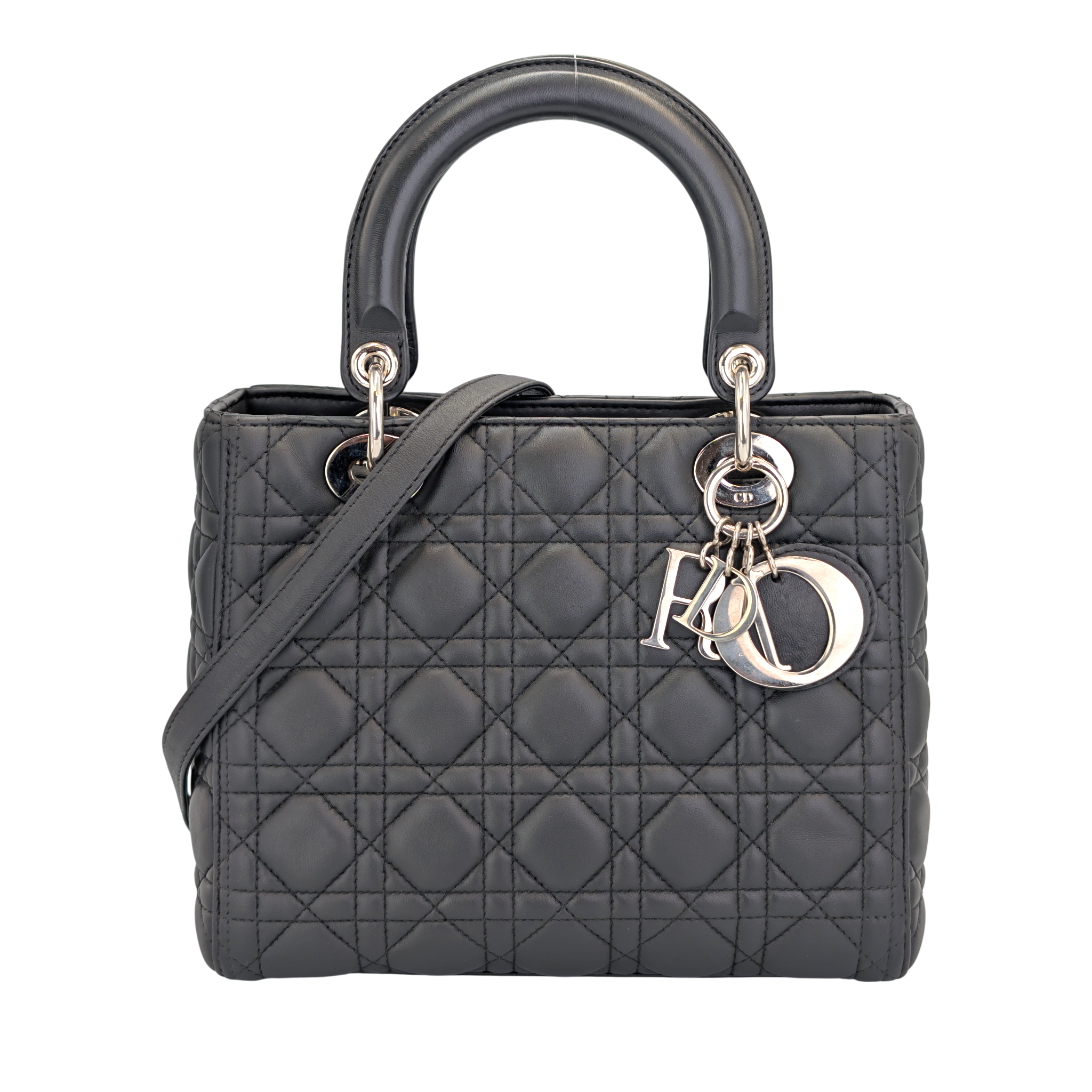 Dior Lady Dior Medium Black Lambskin Silver
