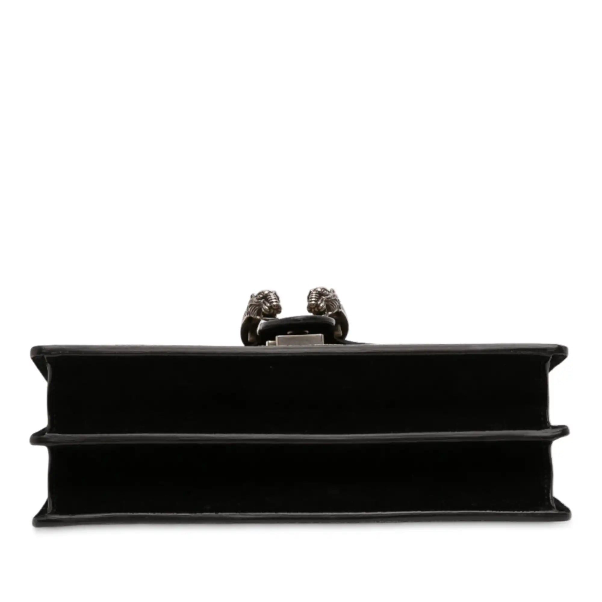 Dionysus, the Greek god of wine and joy, is the inspiration for the Gucci collection of the same name. The tiger head clasp on the flap refers to the legend according to which Dionysus is said to have crossed the Tigris on a tiger sent by Zeus. On the other hand, the horseshoe shape of the buckle creates a reference to equestrian sport, which is close to the Italian fashion house. This example in the voluminous medium version was made from light brown, coated GG canvas. The Bag has red suede trimmings on the sides, bottom and flap. The Bag is worn over the shoulder. It features a silver chain strap, a snap closure flap and a center zippered compartment. The silver chain strap can be worn double over the shoulder or simply crossbody.