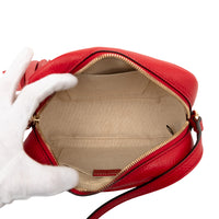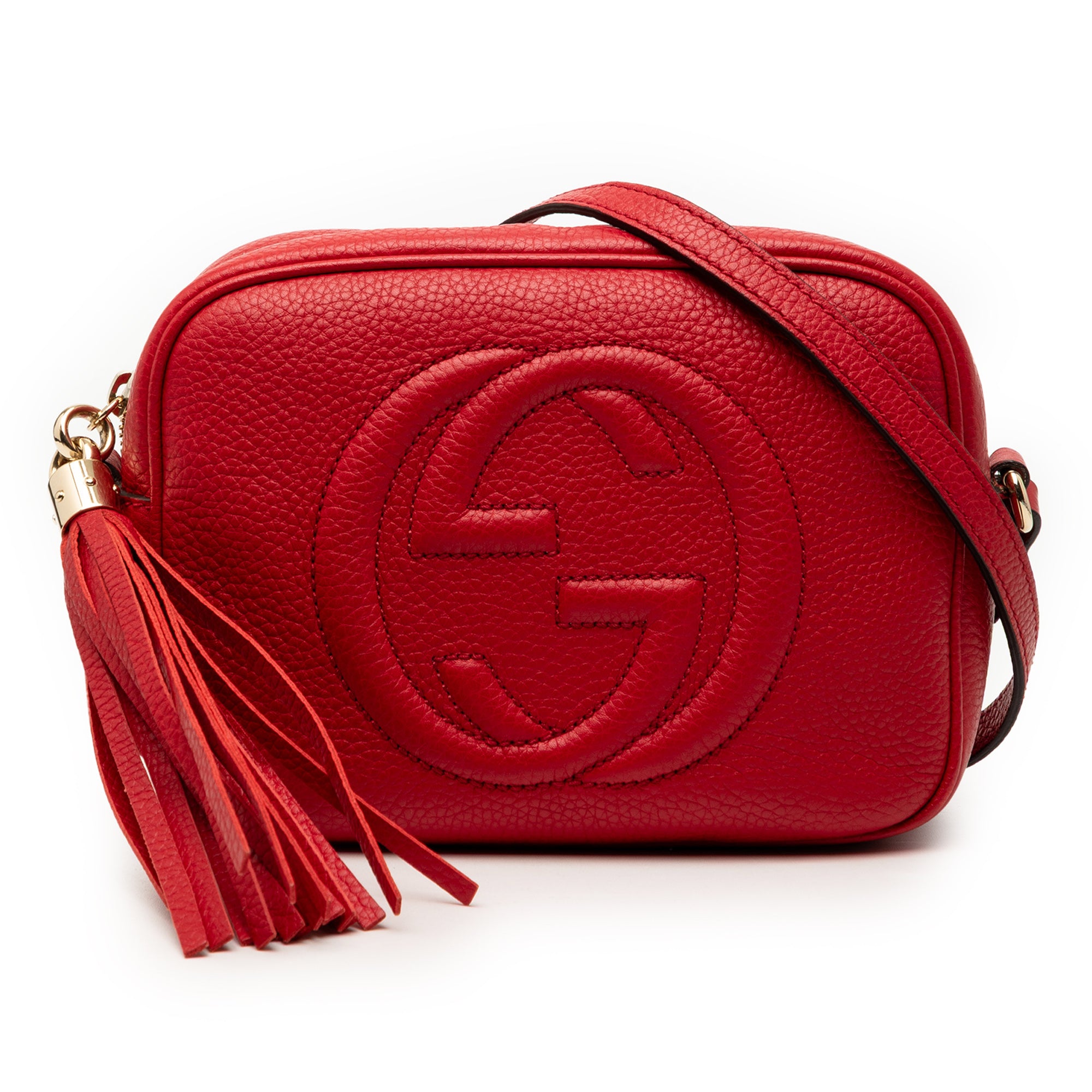 The Gucci Leather Soho Disco Crossbody is a compact crossbody bag with a clean, rounded silhouette and a subtly embossed GG logo on the front. Crafted from soft leather, this model combines a structured shape with a supple feel. Distinctive features include the tassel charm as an elegant detail and the top zipper, which securely closes the bag and lends the bag a sleek, understated look.