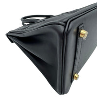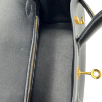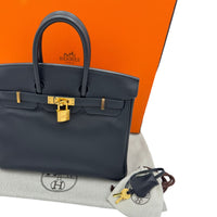 This one Bag probably needs no introduction. This Hermès Birkin in the highly coveted size 25 was made from the brand's well-known Swift leather in black. This is supplemented Bag with gold hardware. It shines with its unmistakable classic shape Bag Pure elegance. Inside there is an open compartment and a zippered compartment.