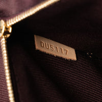 Condition: Die Tasche weist am Aussenmaterial sowie an Ecken und Kanten sichtbare Gebrauchsspuren mit leichter Abnutzung, Kratzern und kleineren Flecken auf, teils auch am Boden und an den Seiten. Am Riemen sind ebenfalls Abnutzung, Kratzer und leichte Flecken vorhanden. Die Hardware inklusive Reissverschluss und Verschluss zeigt Kratzer, und das Innenfutter ist getragen mit kleineren Flecken.