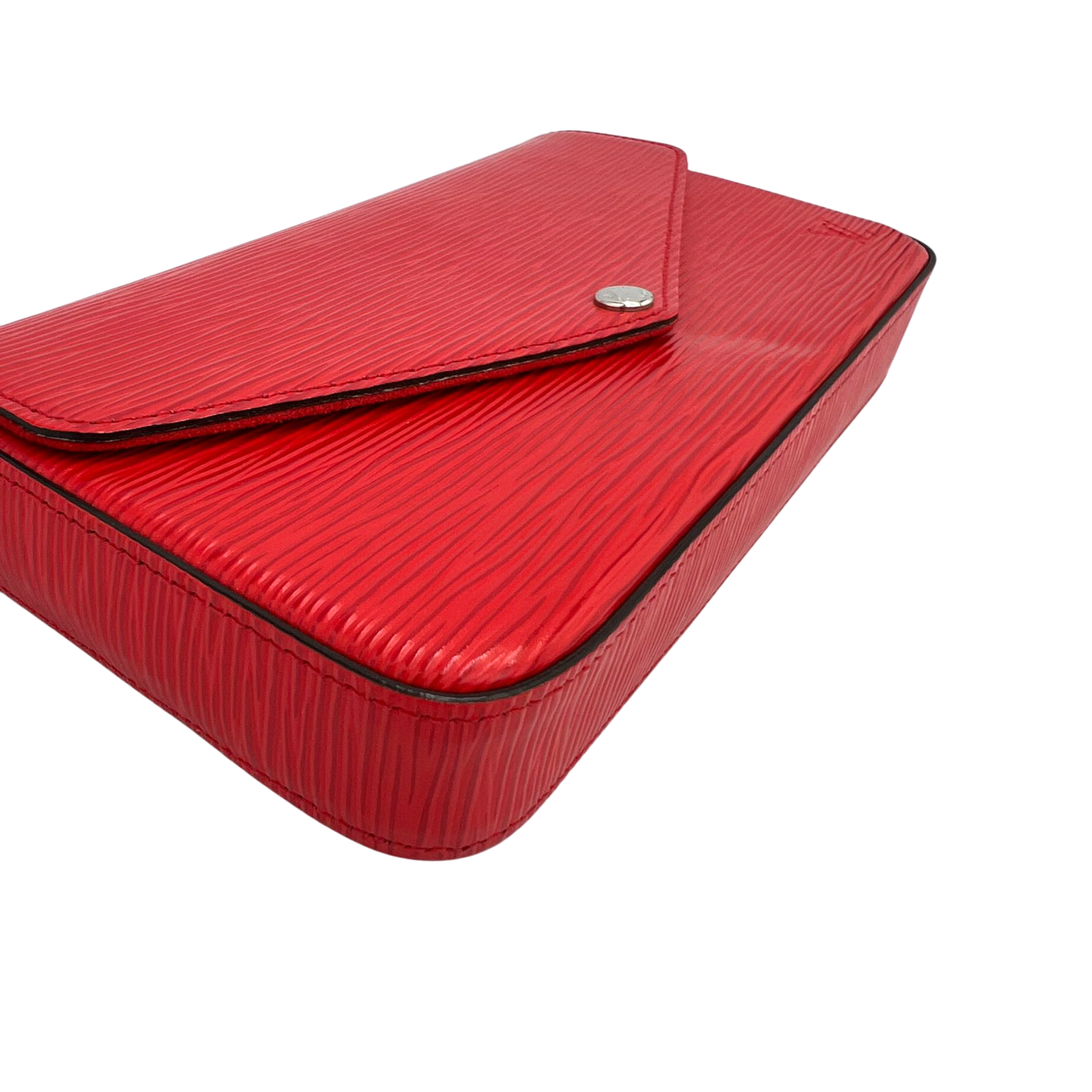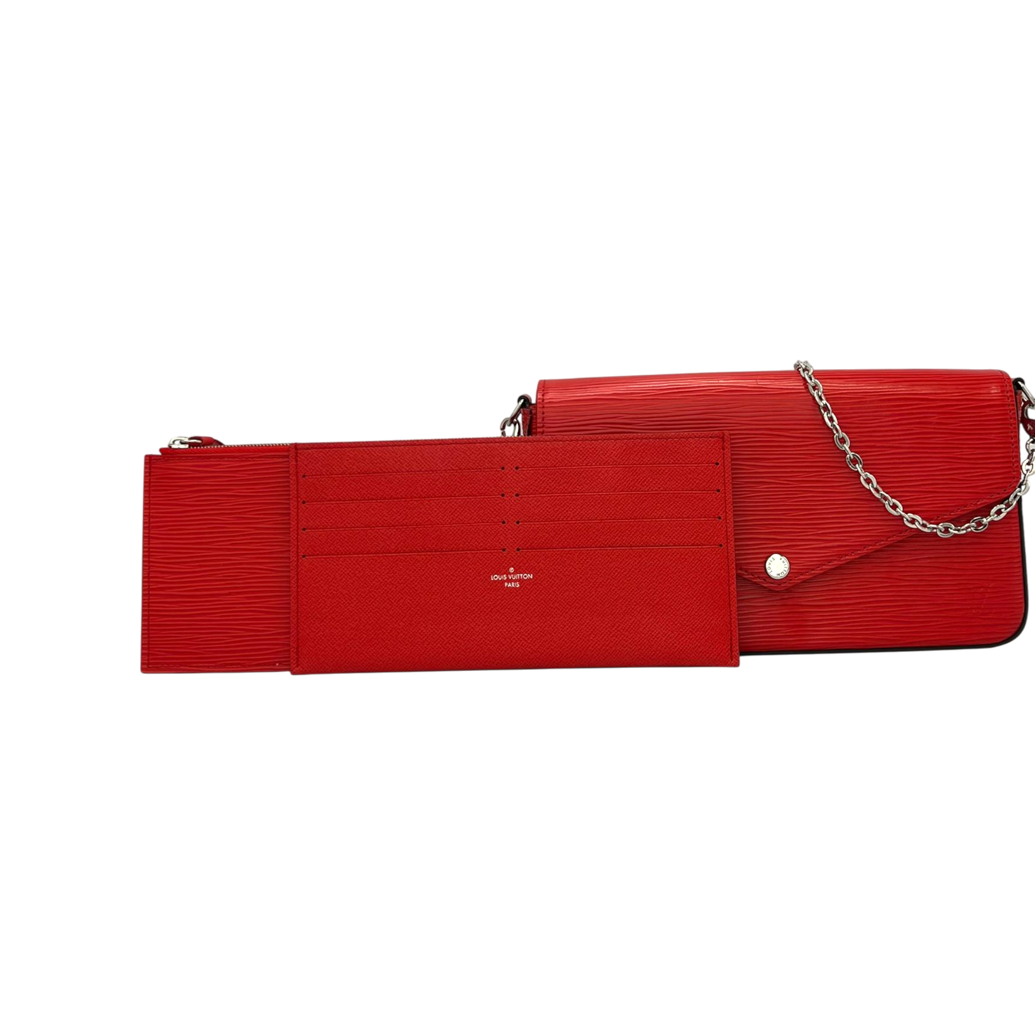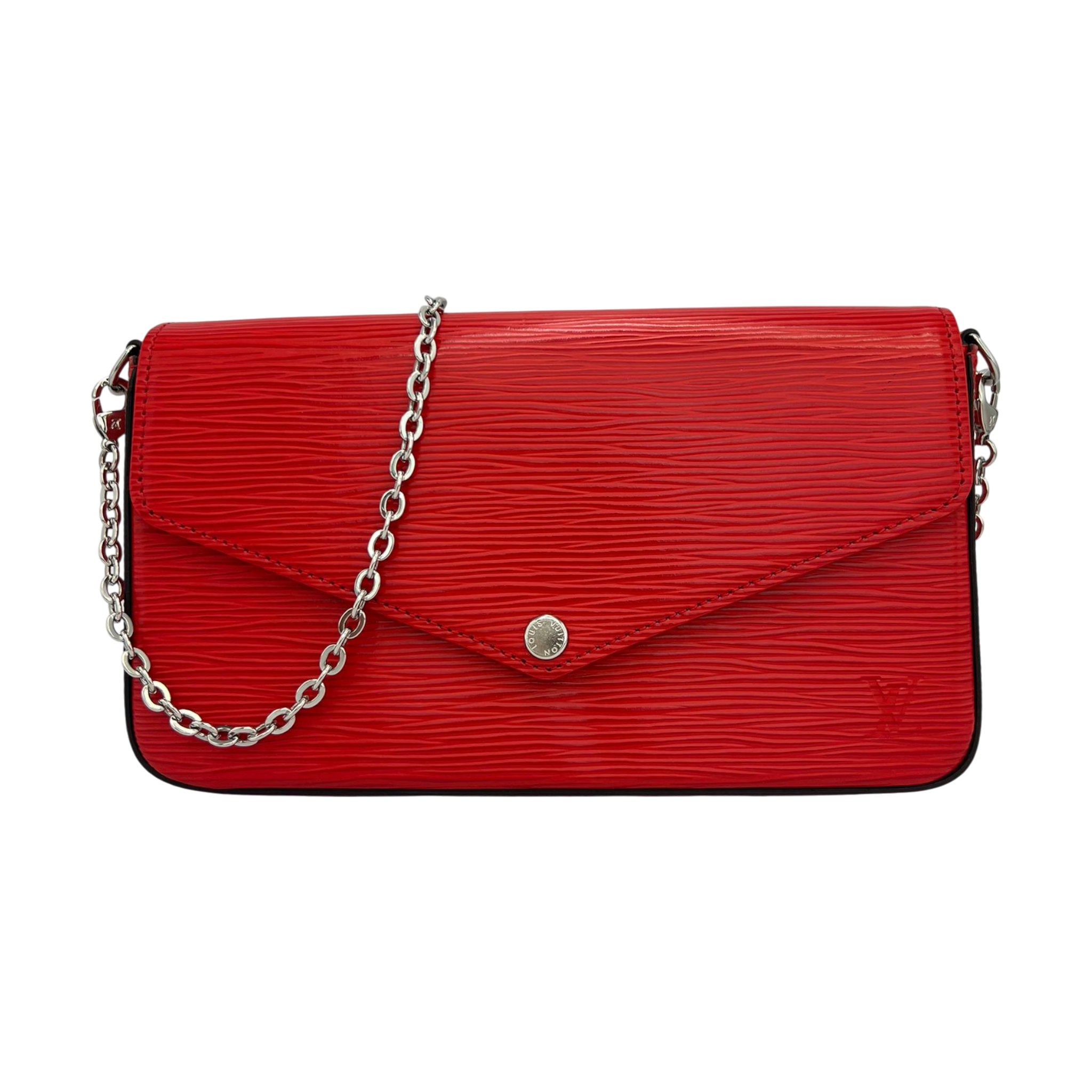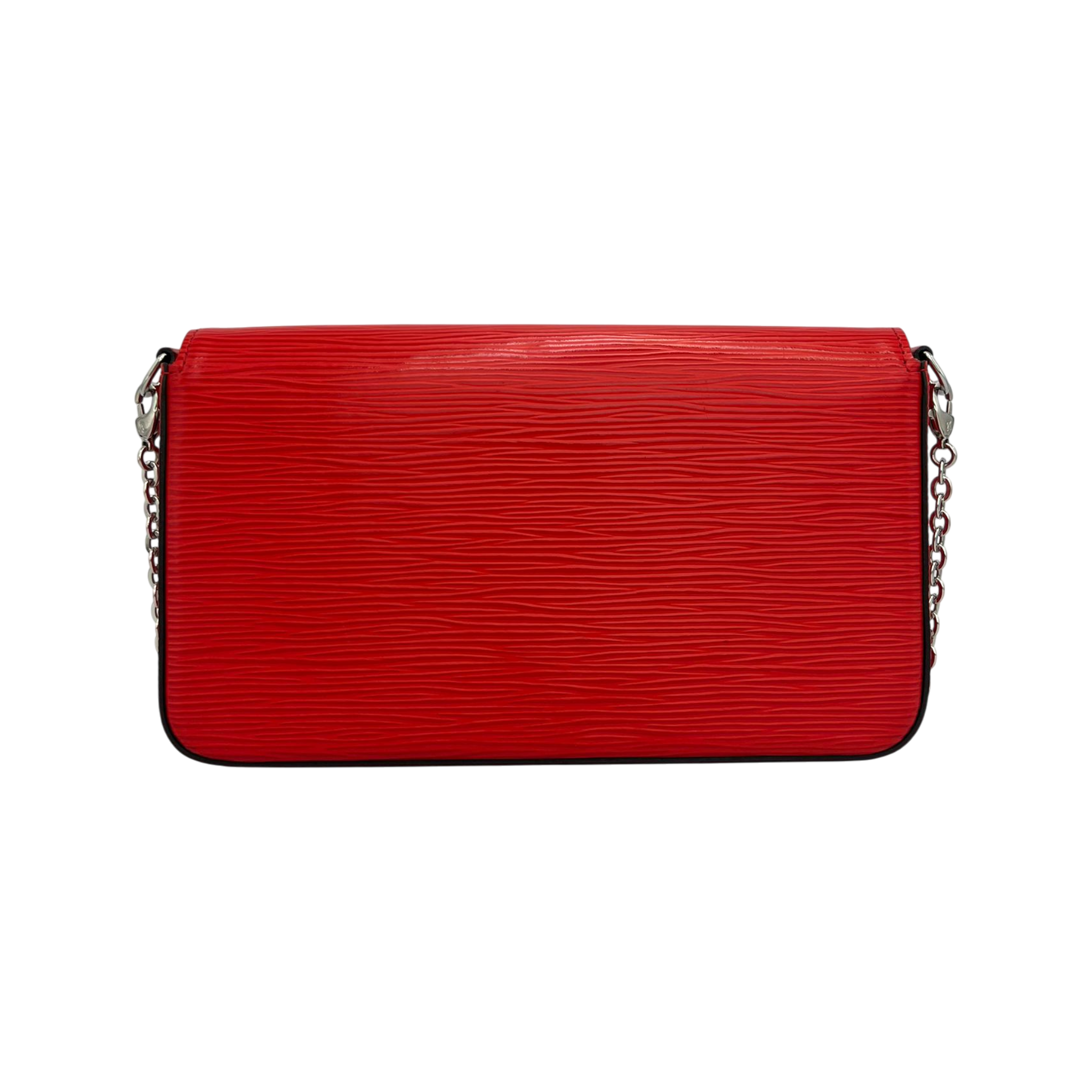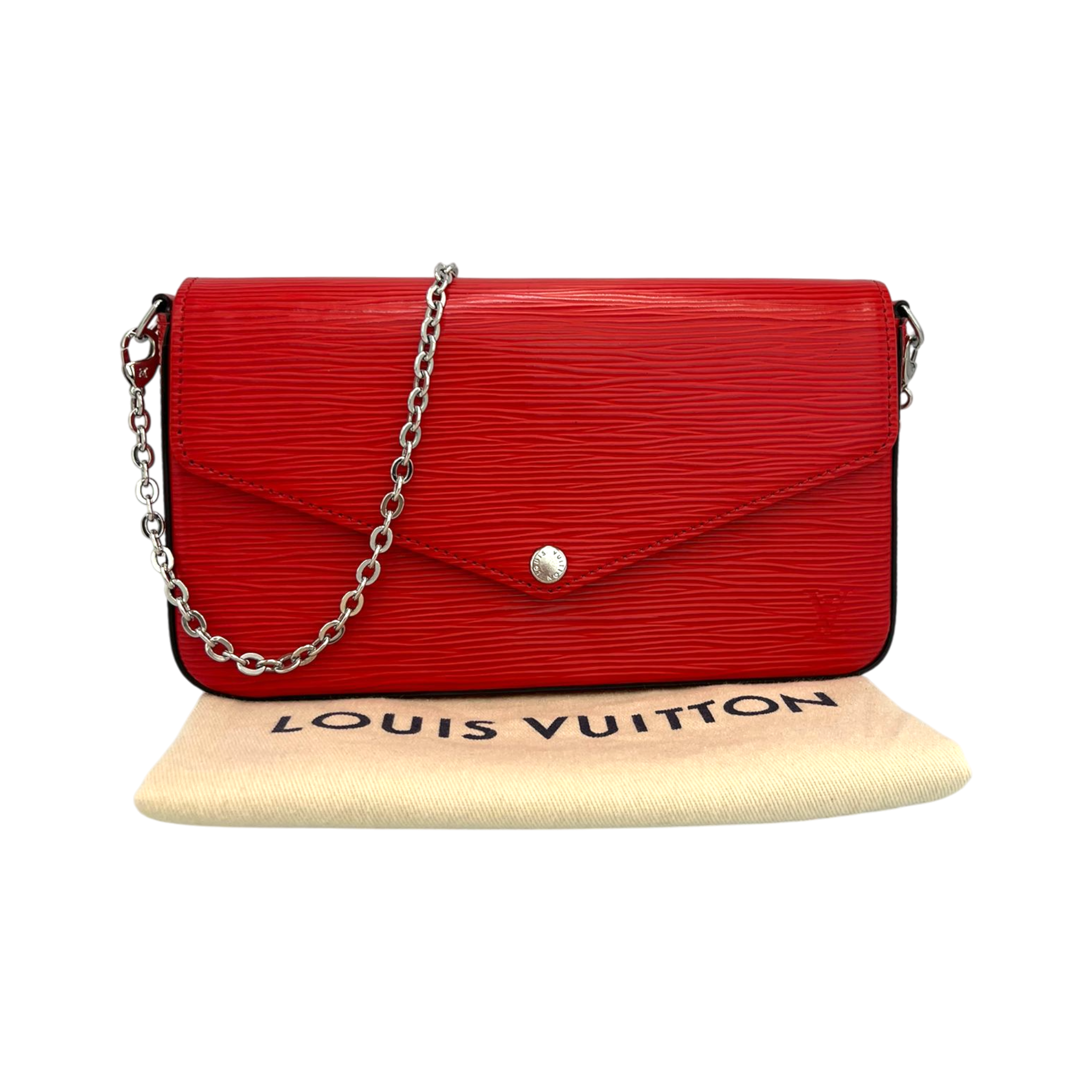The Louis Vuitton Félicie Pochette in red Epi leather combines clean lines with a modern, structured finish. The strong red tone sets a stylish accent and makes this model a versatile companion for everyday life as well as for the evening.