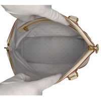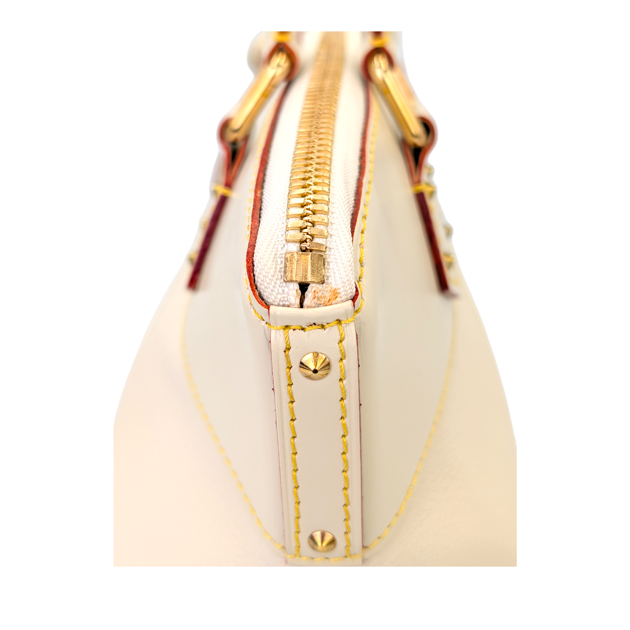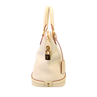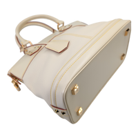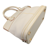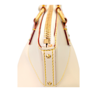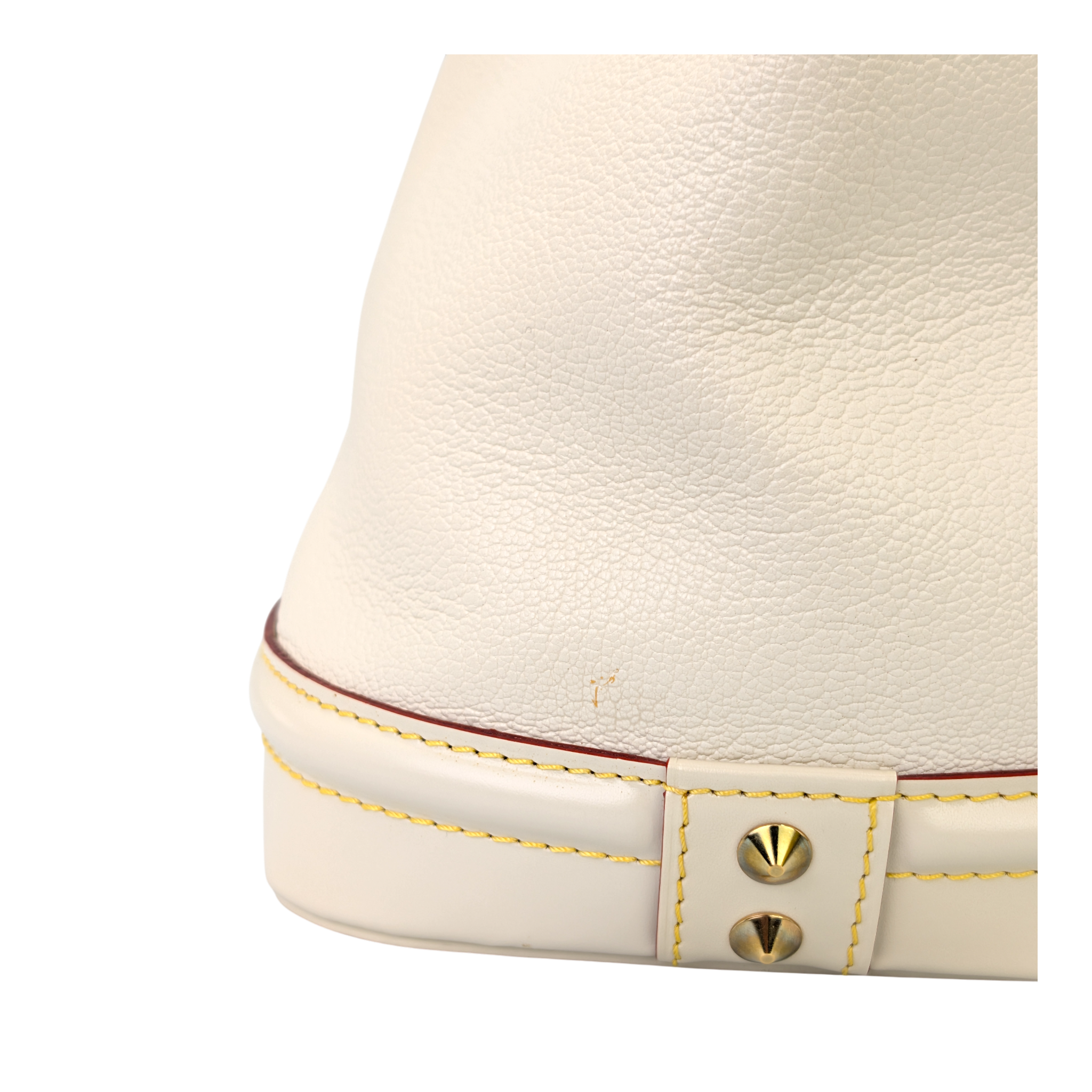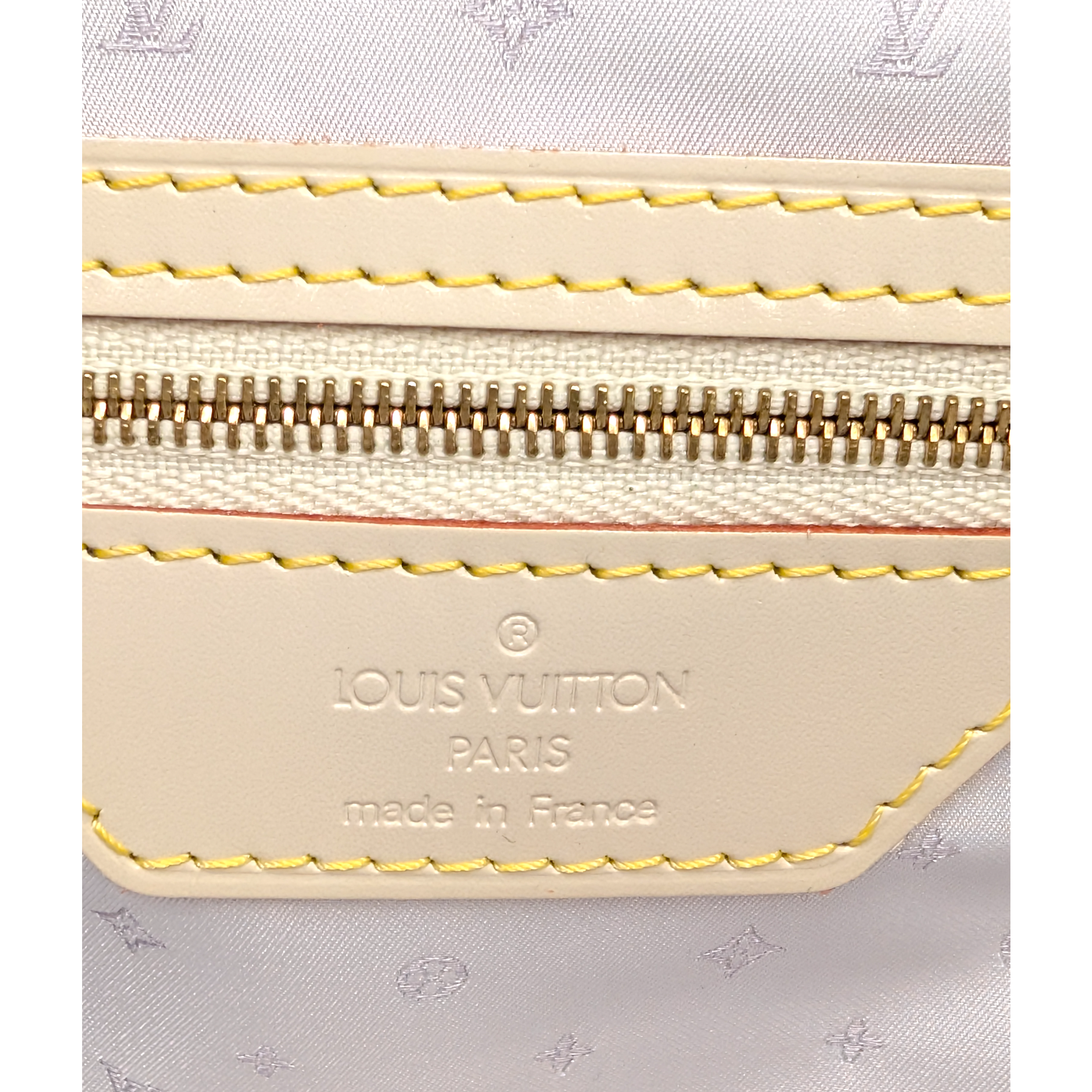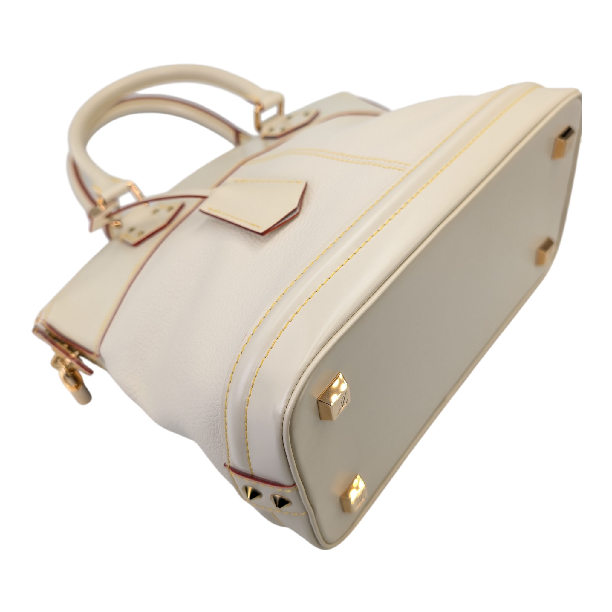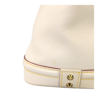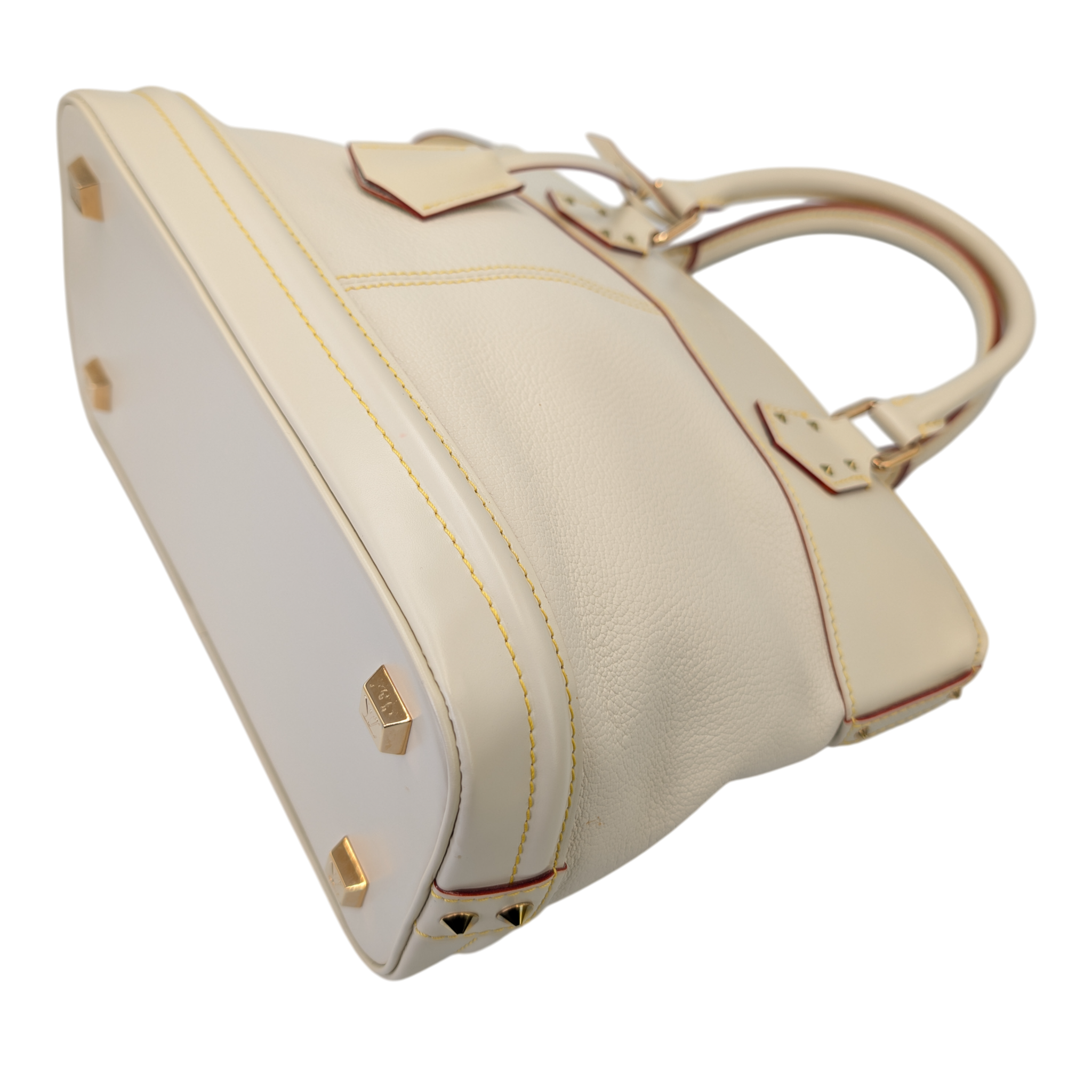 This Louis Vuitton Lockit PM is crafted from off-white Suhali leather and features gold detailing, rolled leather handles, a zip top opening and an interior zip pocket. The zipper can also be secured with a small padlock and can be carried in the hand or arm.