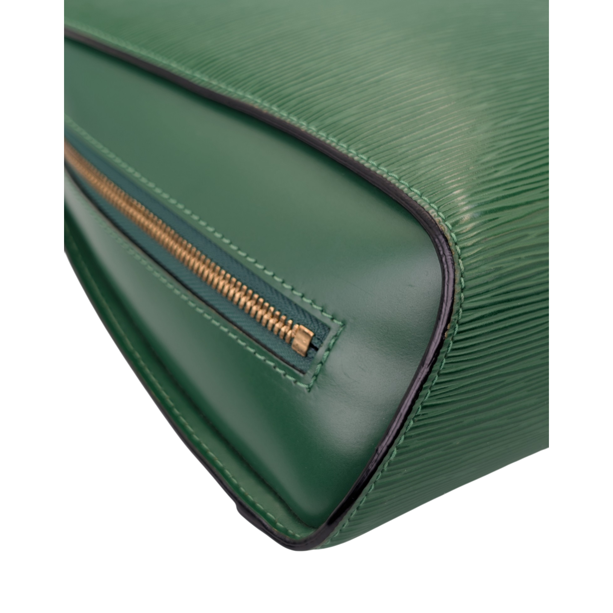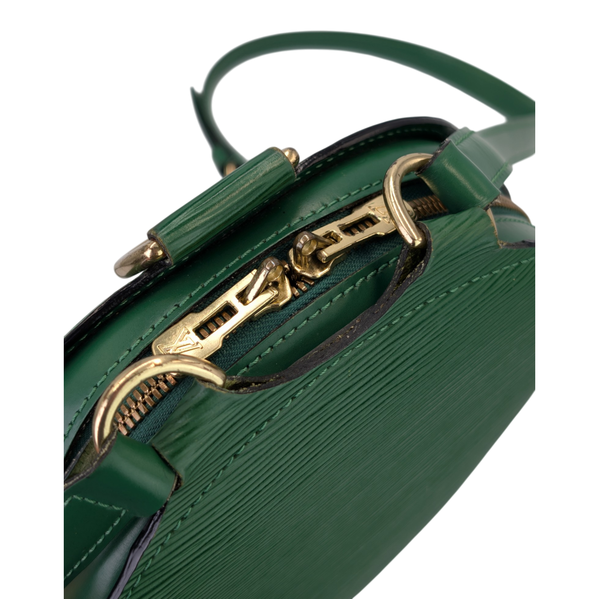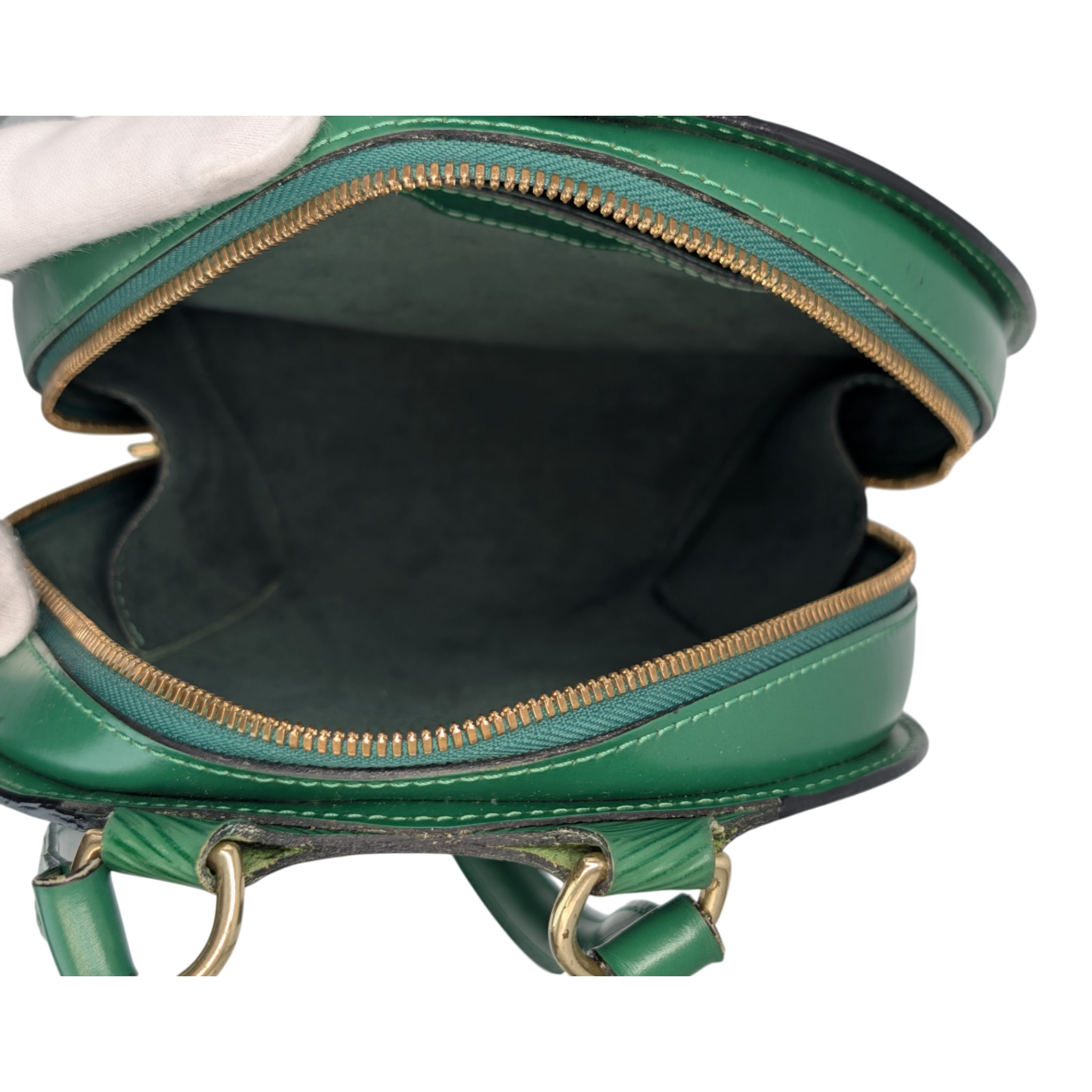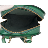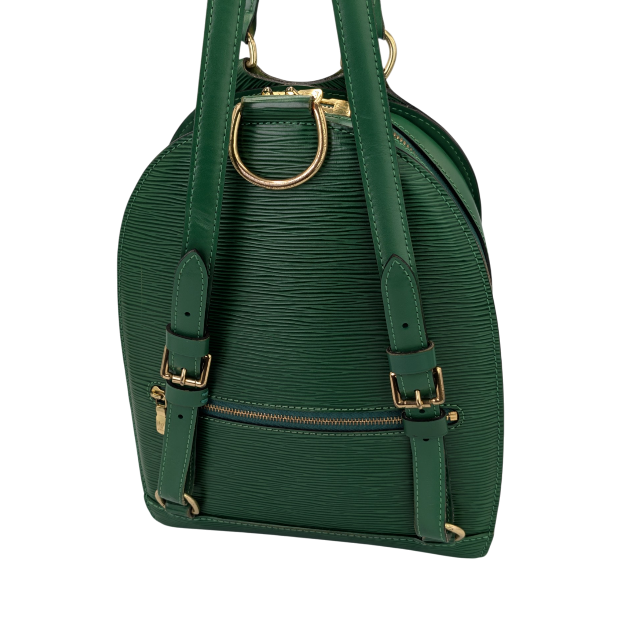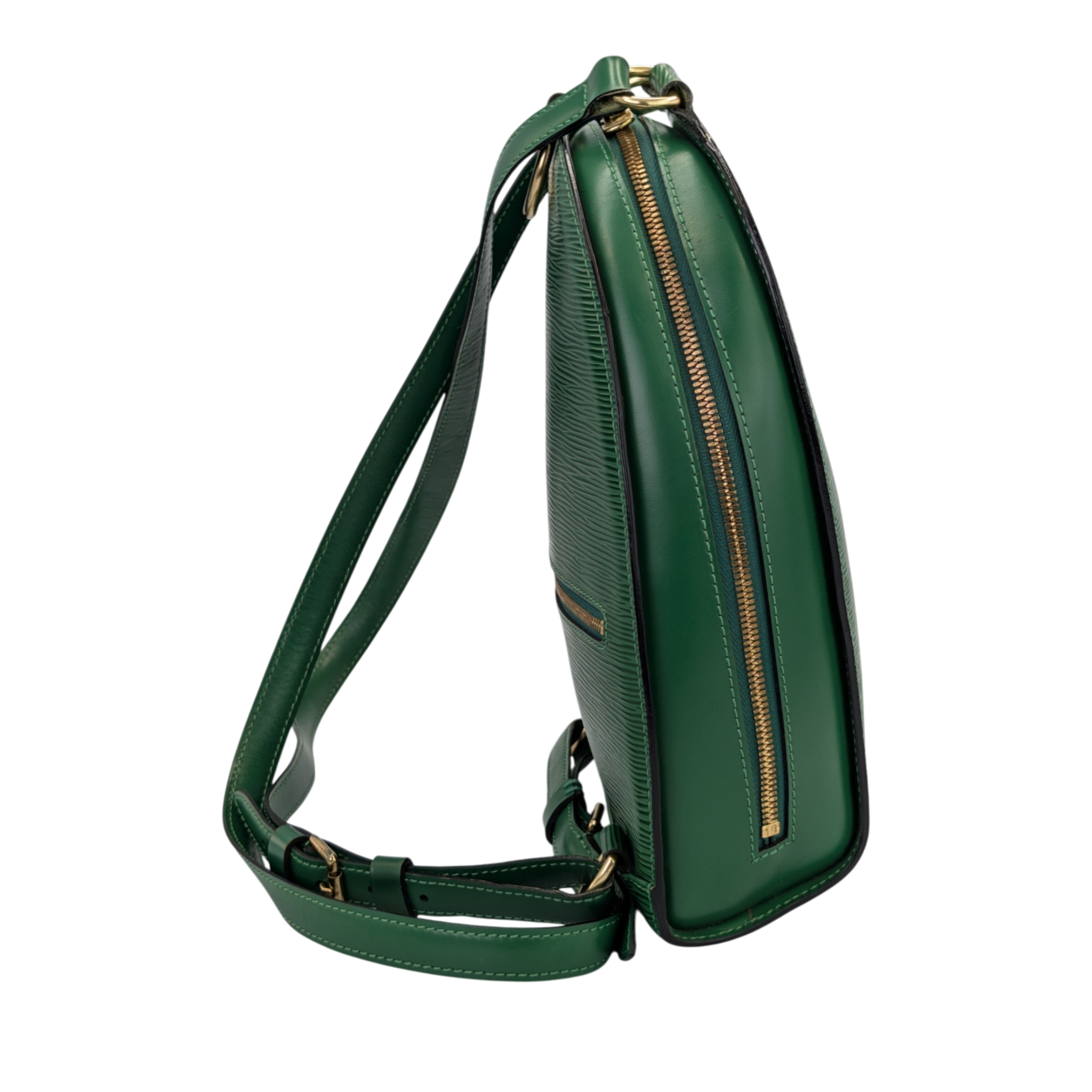 This small, elegant Louis Vuitton Mabillon backpack is made from black Epi leather and is adorned with golden details. The backpack has a gold zipper all the way around and a slip pocket on the inside. A zipped compartment on the back allows you to carry your essentials close to your body. The flat, length-adjustable shoulder straps allow the rucksack to be worn comfortably across the back. Alternatively, the backpack can also be carried in the hand with a golden ring.
