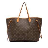 This beautiful Louis Vuitton Neverfull GM Tote Bag invites you to travel with Louis Vuitton. The Bag was made from brown Monogram canvas. Trimmings made of natural cowhide and golden details create a look that you are used to from Louis Vuitton. The slim, comfortable handles are easy to place over your shoulder or arm.