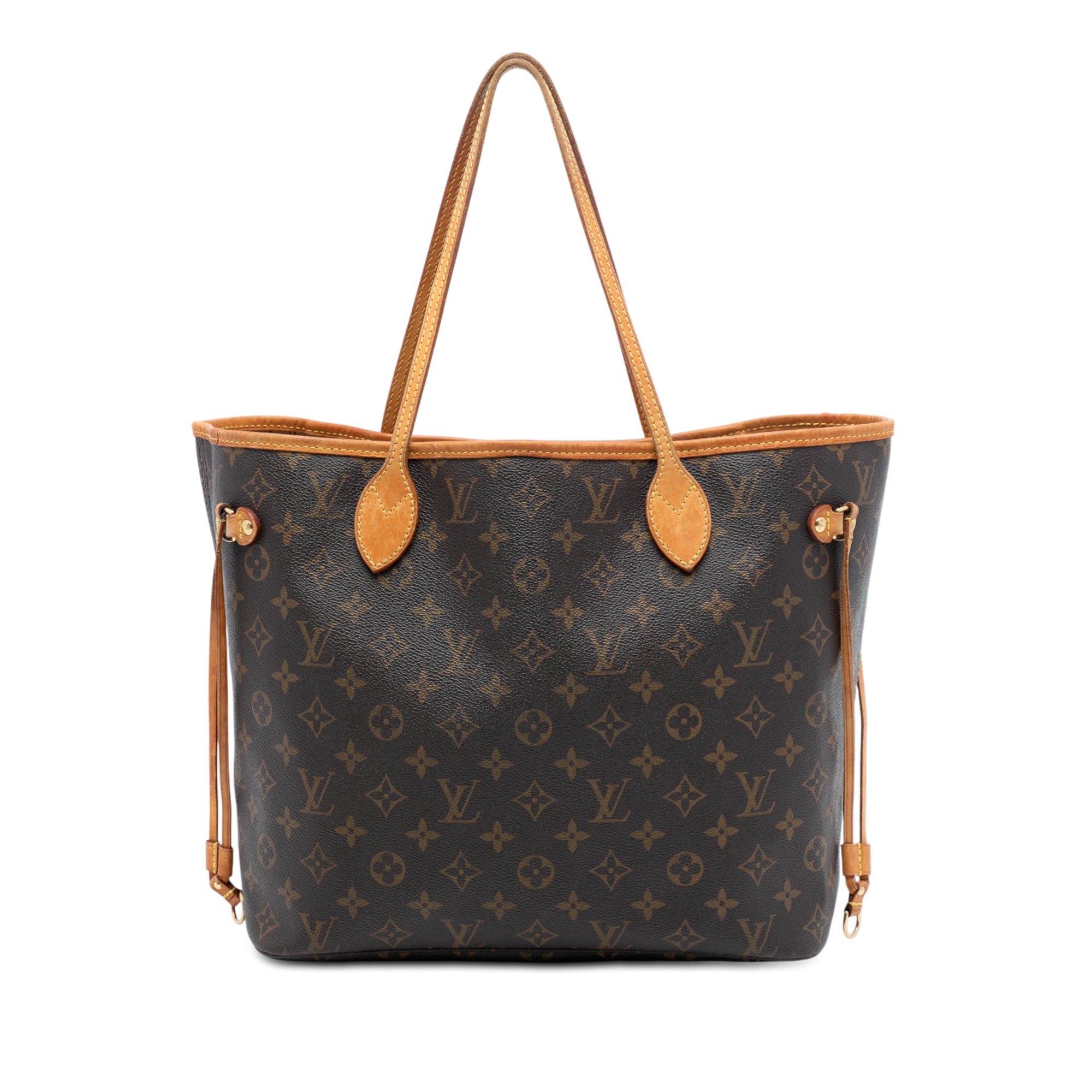 The Louis Vuitton Monogram Neverfull MM is a spacious Tote with clean lines and the iconic Monogram Canvas. The coated canvas body is framed by natural Vachetta leather trim, giving the silhouette a warm, classic touch. Flat Vachetta leather handles ensure comfortable carrying by hand or over the shoulder, even when fully loaded.