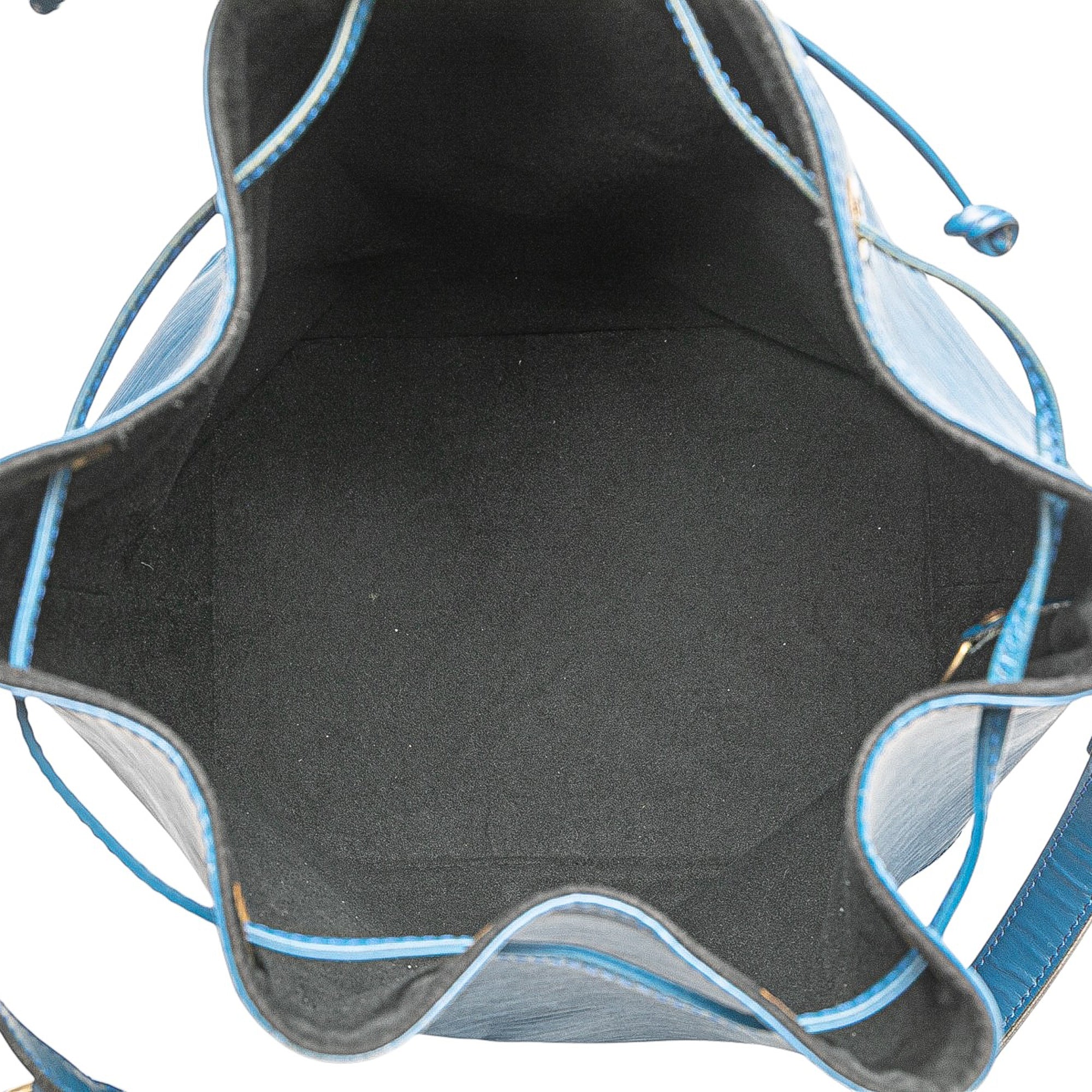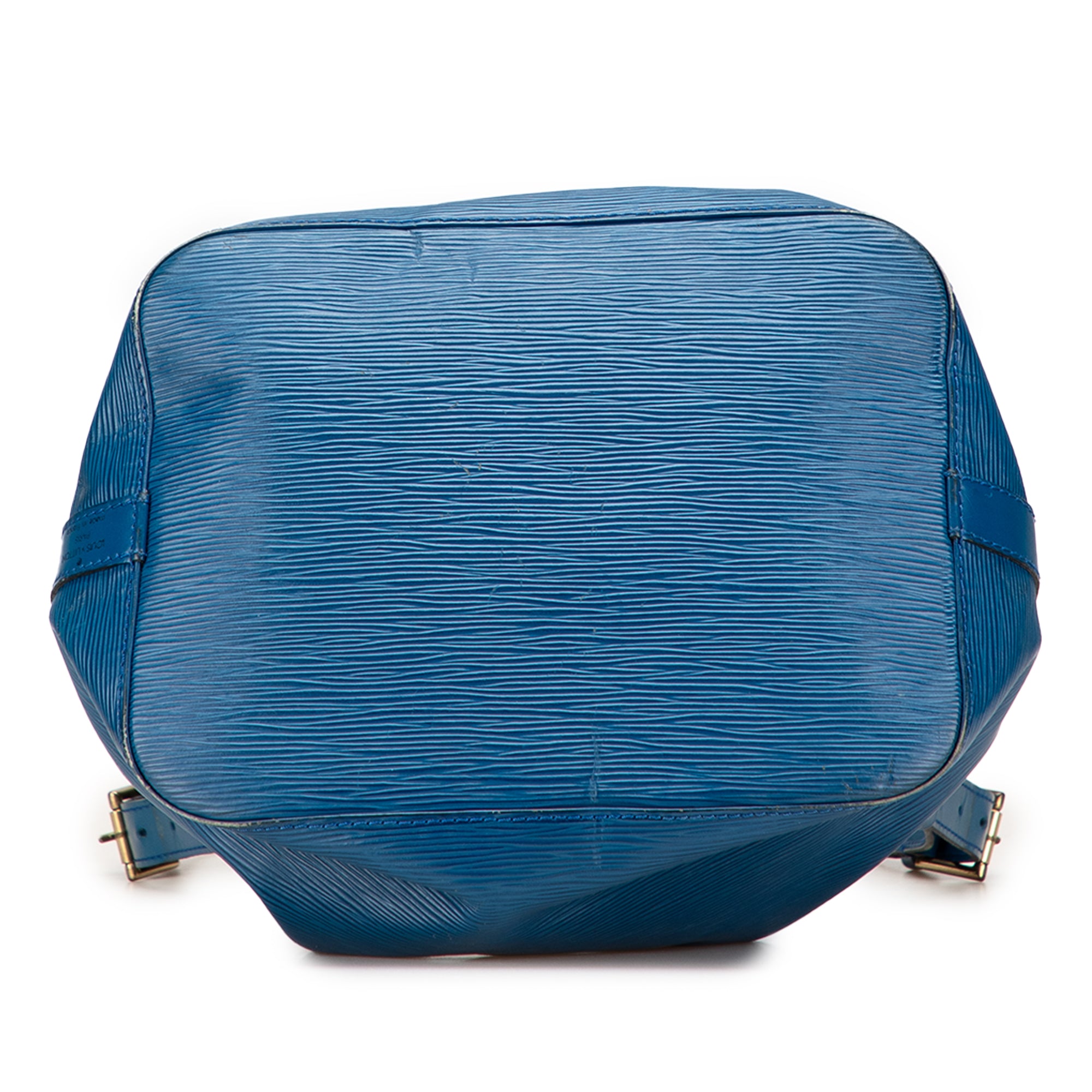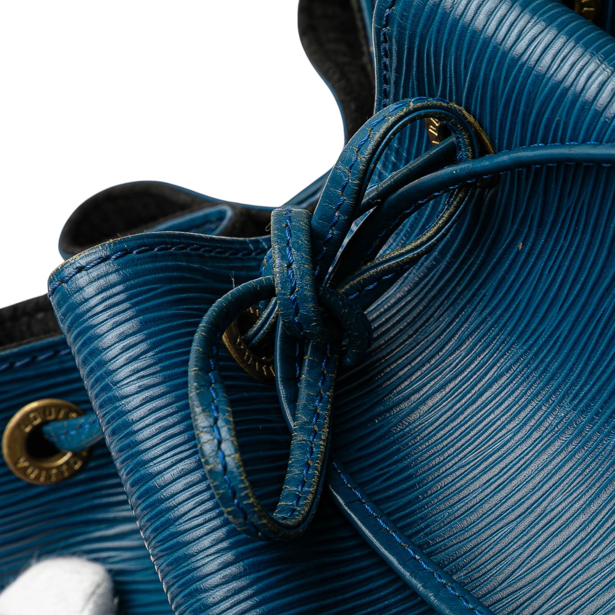 The Louis Vuitton Epi Petit Noé is a compact take on the iconic Noé silhouette, combining clean lines with a relaxed bucket shape. A defining feature is the textured Epi leather with its fine, crosswise grain, which gives the bag an elegant presence and excellent structural integrity. The open top is cinched with a leather drawstring featuring metal grommets, adding a subtle, functional accent.