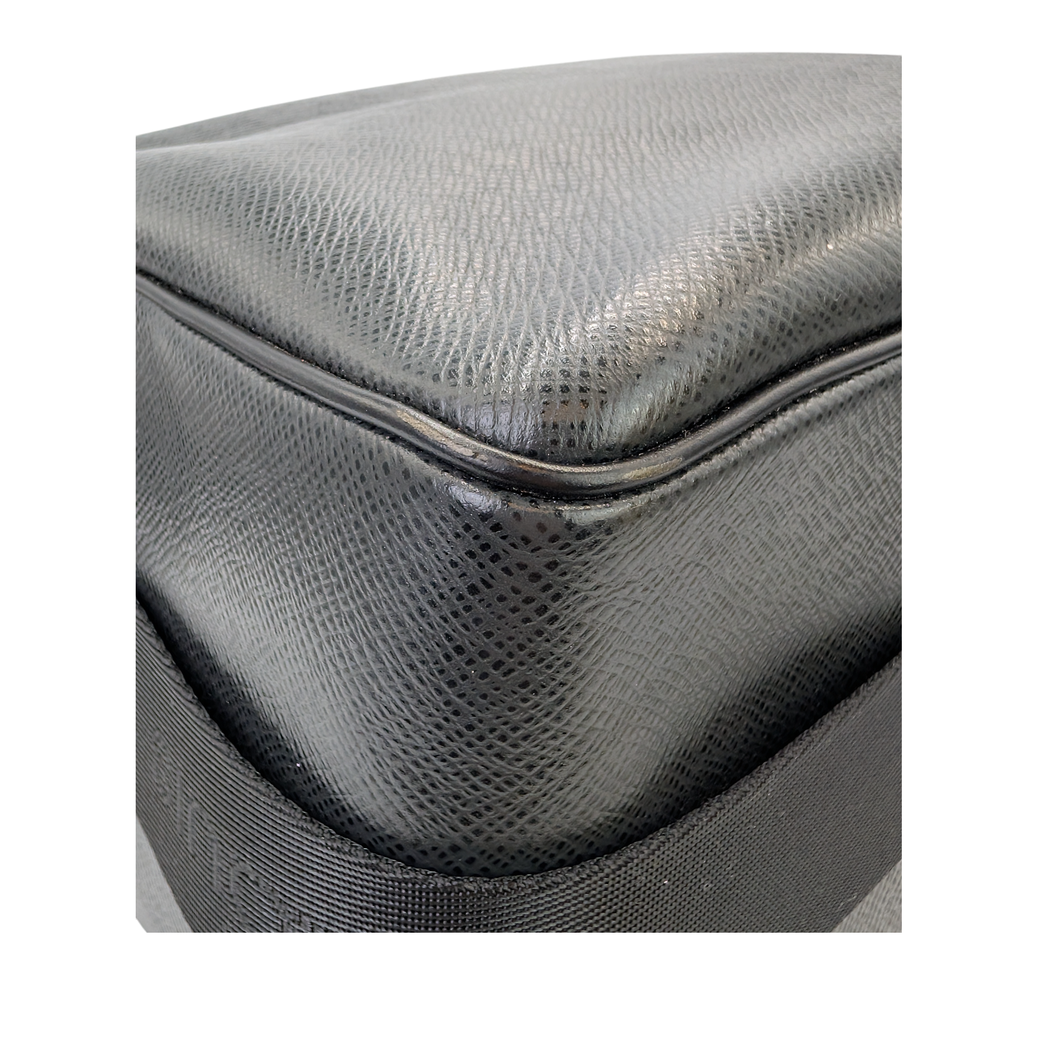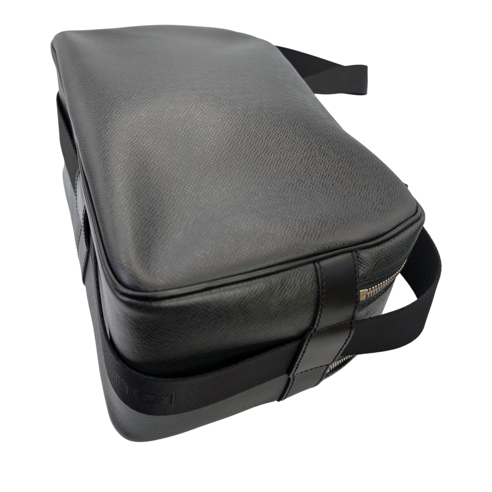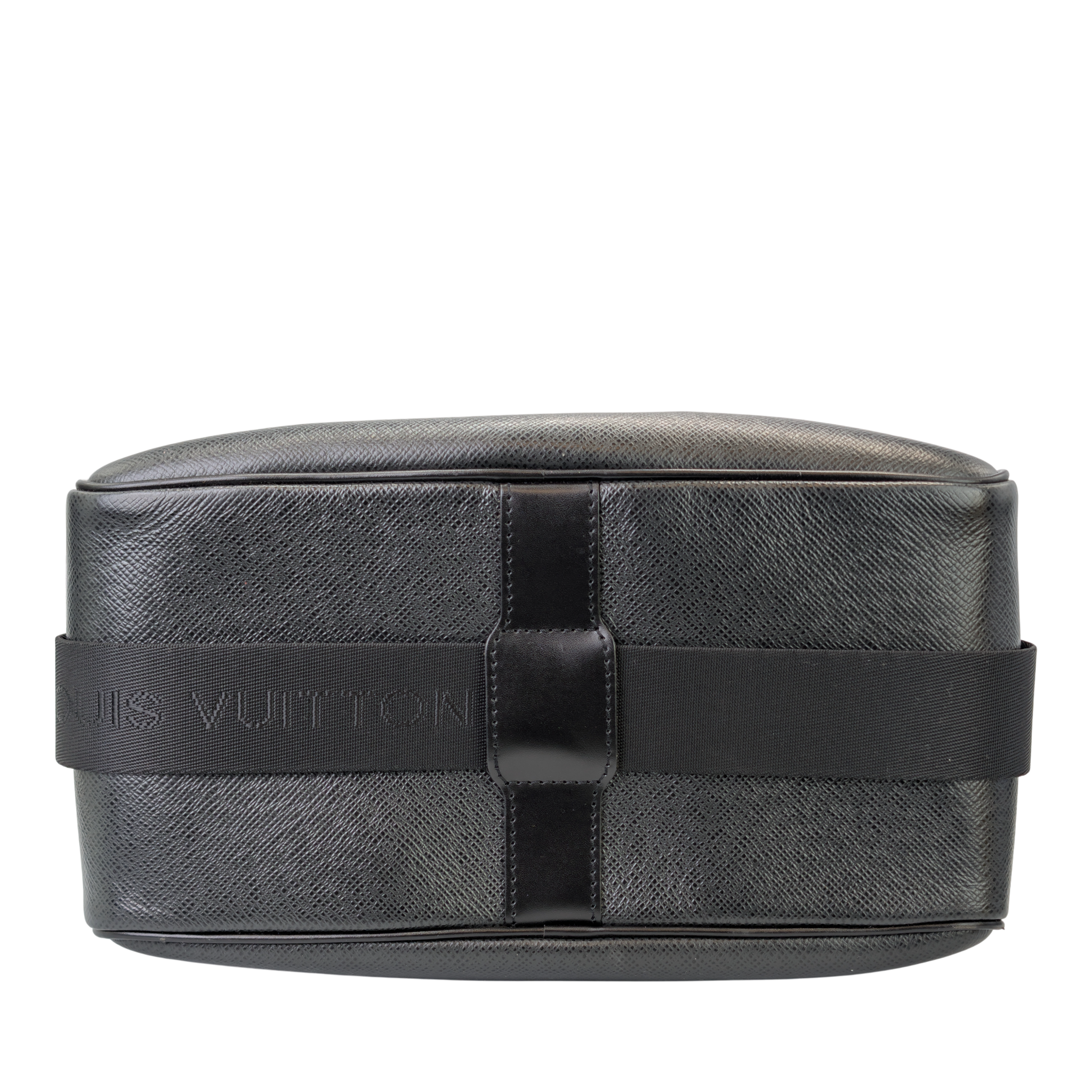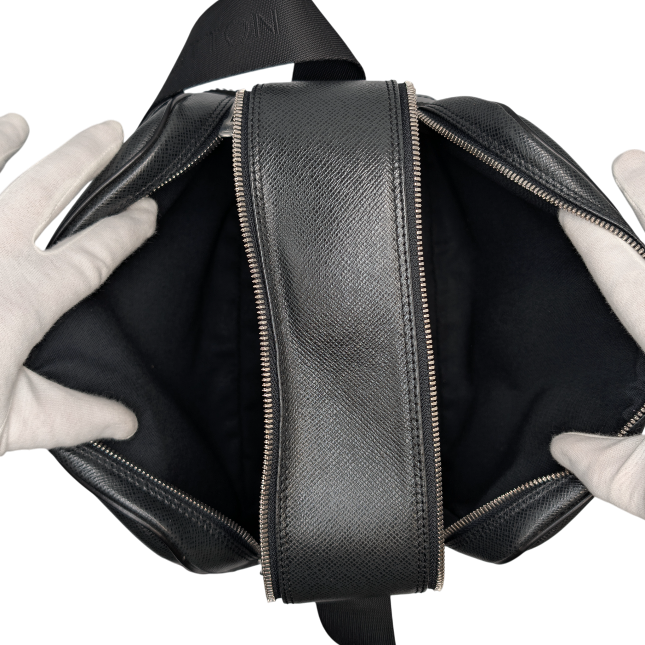 This Louis Vuitton Reporter PM Bag is made of black Taiga leather. This durable calf leather has a fine, natural-looking structure, which is achieved by embossing the leather. There is a large, open outside compartment on the front. Two different compartments can be opened using the two double zippers on the top edge. On the inside it has Bag an open pocket. The Bag has a comfortable, adjustable canvas shoulder strap. The model was inspired by photographers' bags.