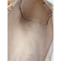 The handles have scratches, wear and minor stains. The interior lining shows wear and some discoloration. The hardware shows scratches and signs of tarnishing.