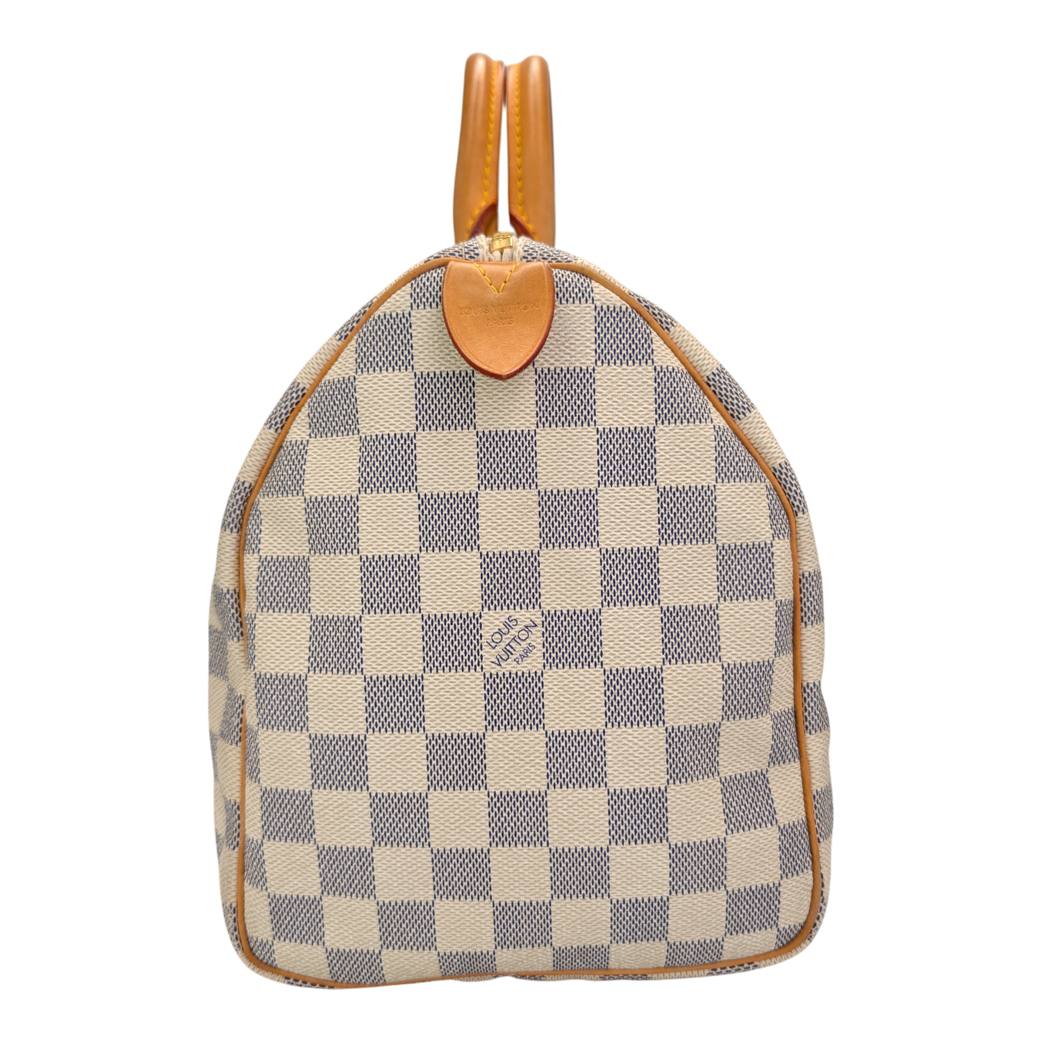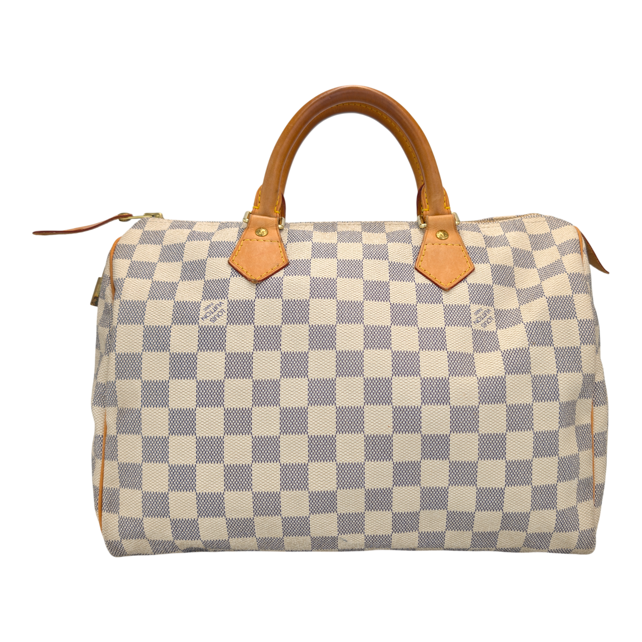 The Louis Vuitton Speedy 30 Bag was made from Damier Azur canvas. The Speedy format is extremely popular due to its compact appearance and spaciousness. The Bag Can be carried in the hand or around the shoulder, making it perfect for everyday use or traveling. A beautiful classic and one of Louis Vuitton's most popular models.