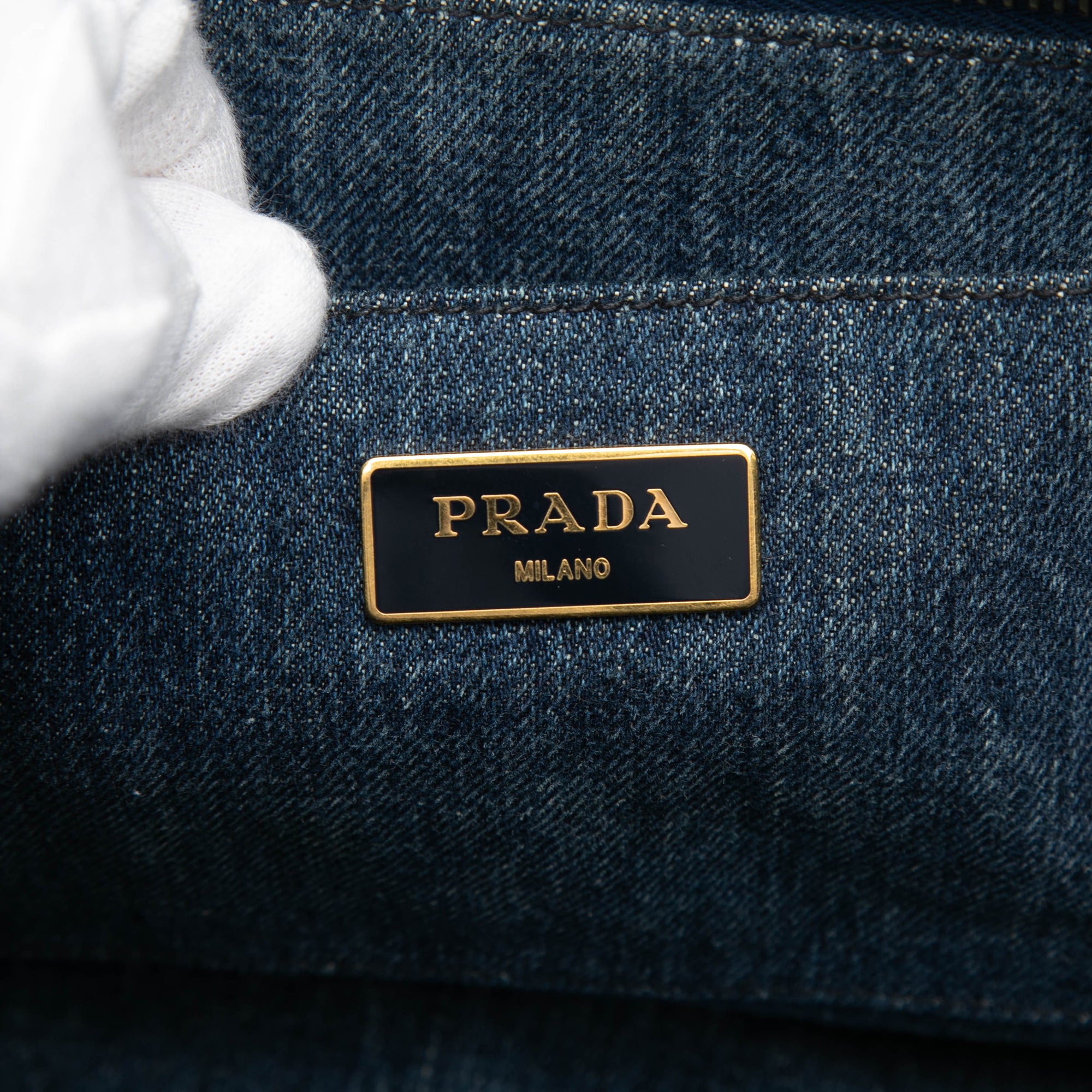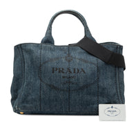 Prada Canapa Logo Satchel in Blue Denim