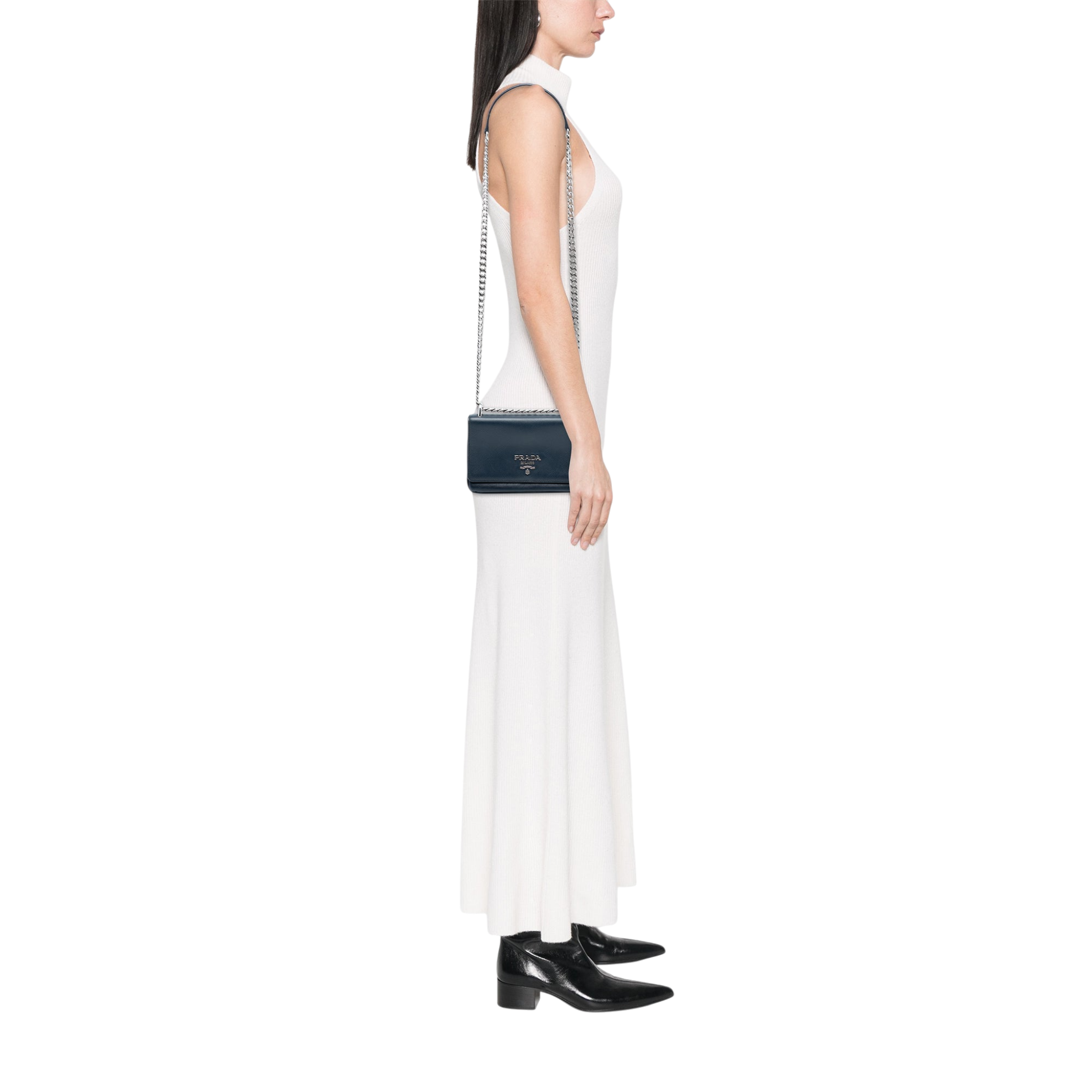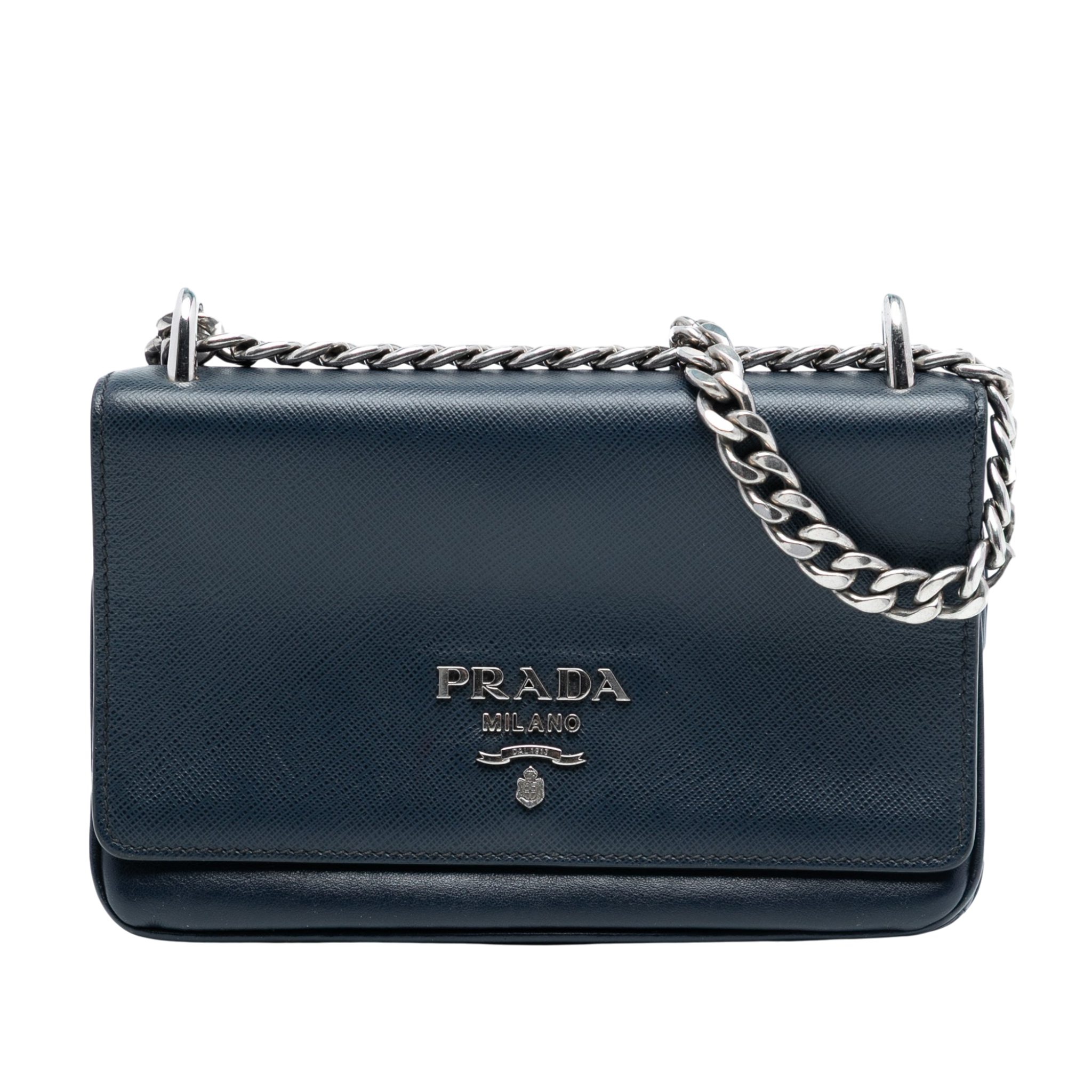 This elegant Prada City Chain Crossbody combines timeless lines with functional everyday practicality. Made from the iconic Saffiano leather, the Bag impresses with its structured shape, high durability and subtly luxurious look. The silver-colored chain shoulder strap adds a modern touch to the design and allows for both crossbody and shoulder carry.