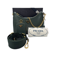 The bags from Prada's Re-Edition collection revisit the designs of Prada's Tessuto bags from the 2000s. This Tessuto Re-Edition 2005 Bag Has a gold-colored chain strap for carrying close to the shoulder or in the hand. That's how it comes Bag with a wide canvas shoulder strap. With this you can Bag Can be worn comfortably crossbody. In the interior it has Bag via a zipper compartment. The Bag comes with a small case that can be attached to the strap. Very cool.