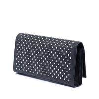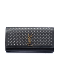 Die Saint Laurent Leather Monogram Crystal Studded Cassandre Clutch interpretiert die klassische Abendtasche mit klarer Linienführung und dem charakteristischen Cassandre-Monogramm auf der Front. Das Modell ist aus Leder gefertigt und mit kristallbesetzten Studs akzentuiert, die dem reduzierten Design eine präzise, schmuckartige Note verleihen. Der Umschlag mit Magnetverschluss sorgt für eine ruhige Silhouette und ein sauberes Finish.