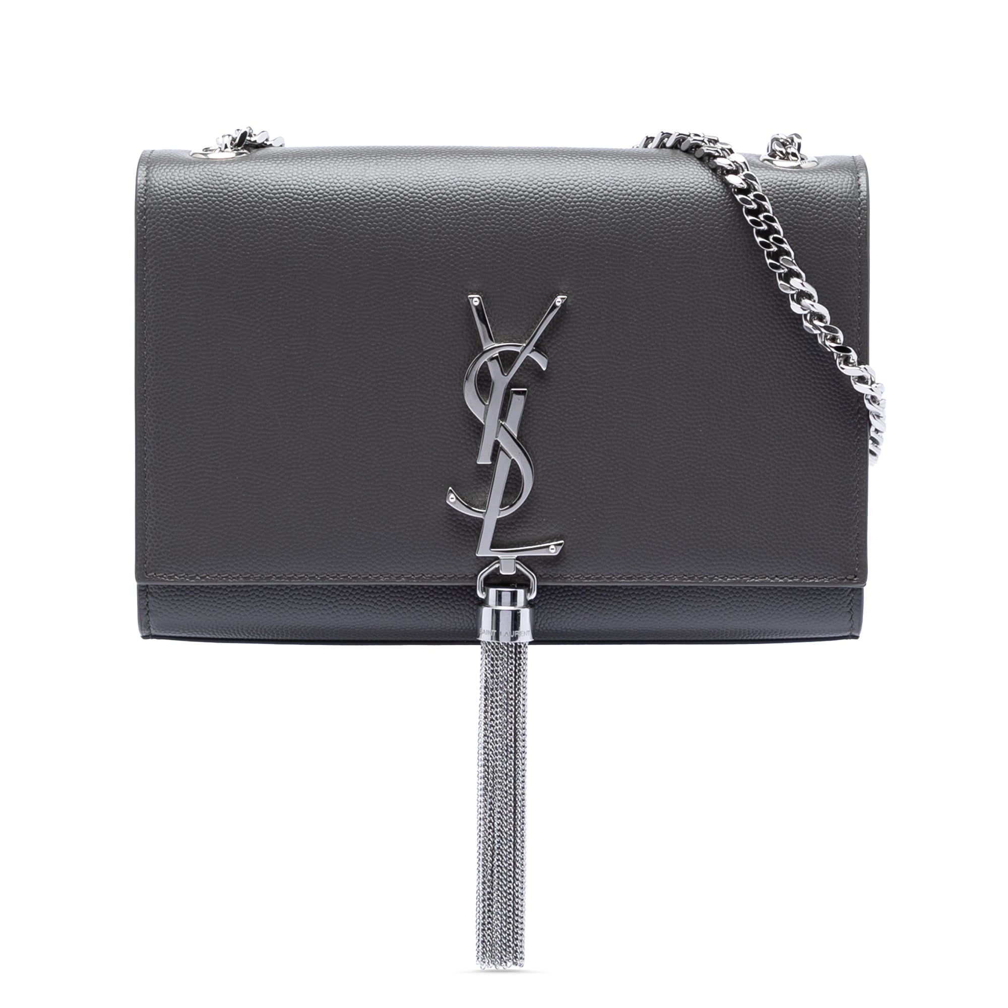 The Saint Laurent Kate Small in grain de poudre leather is an elegant and timeless shoulder bag with the iconic YSL monogram and signature tassel detail. The finely grained calfskin is structured and durable, allowing the Bag to retain its shape particularly well.