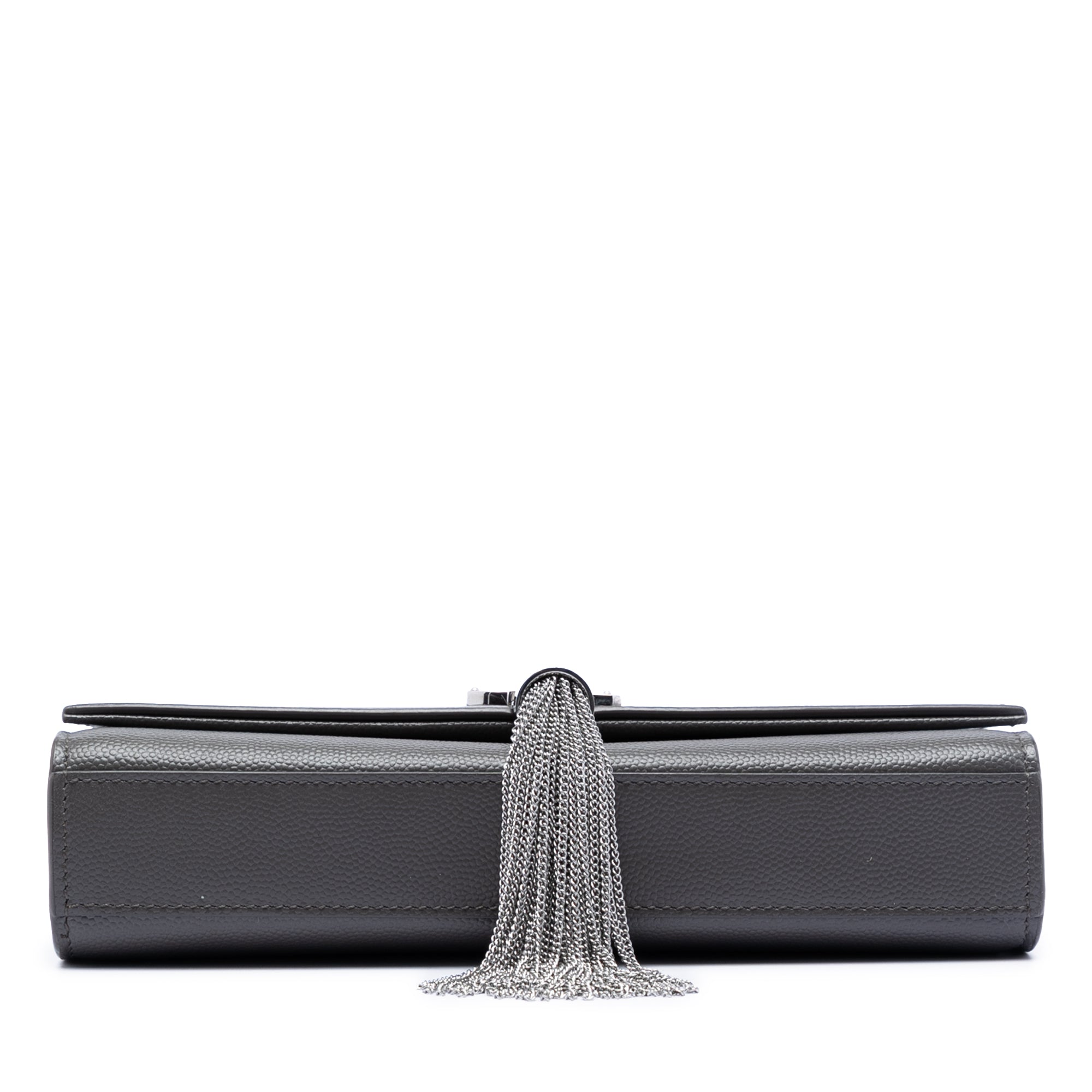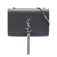 Saint Laurent Kate Tassel Small Black Grain de Poudre Silber