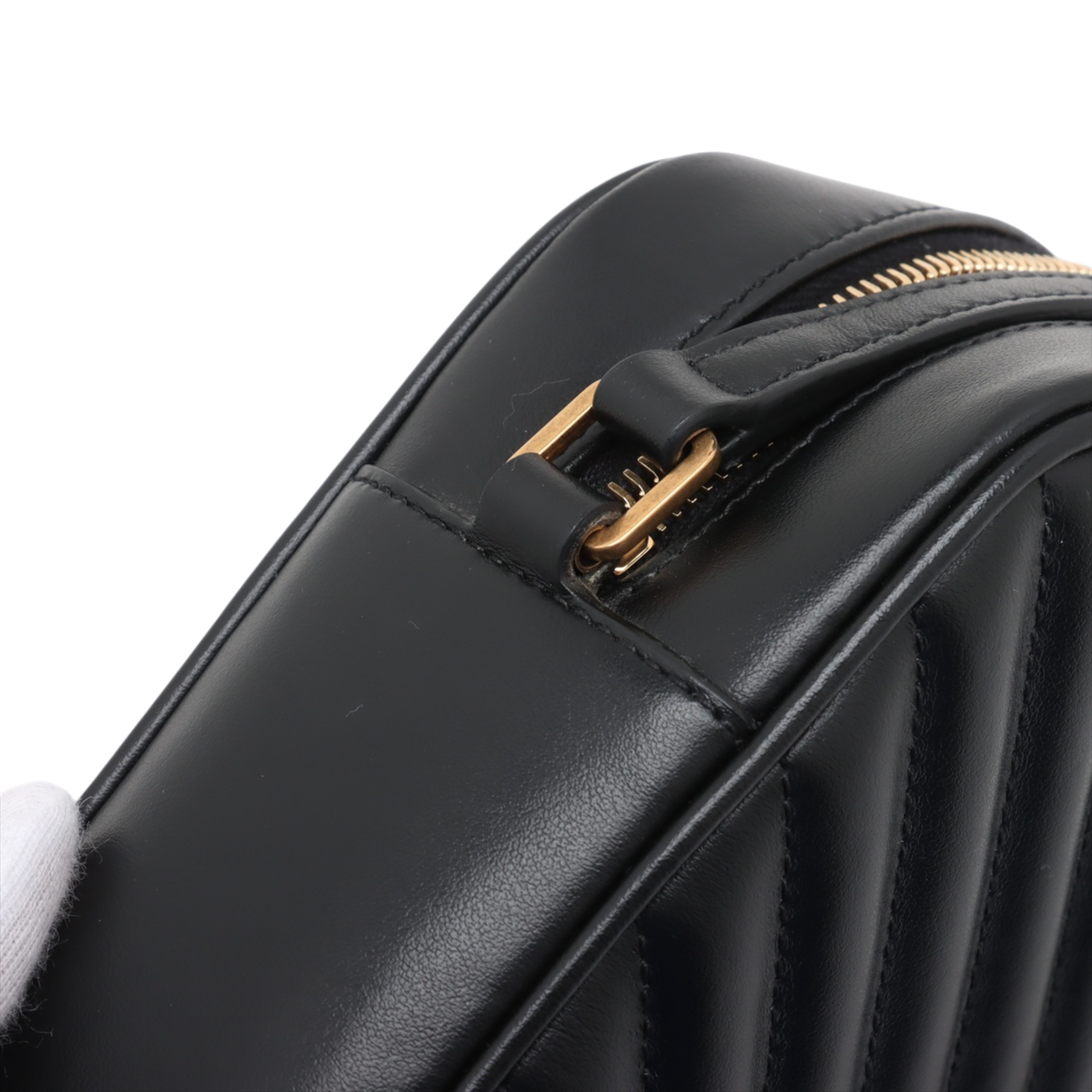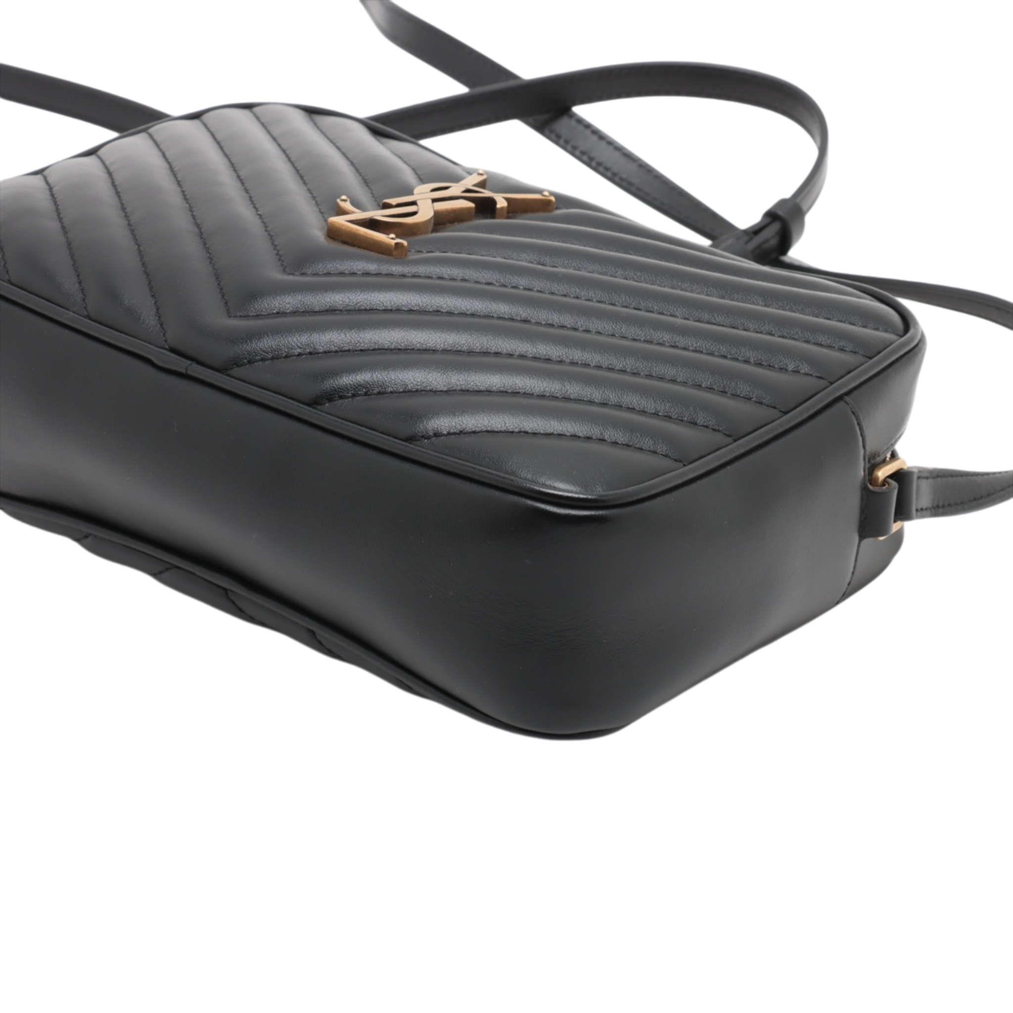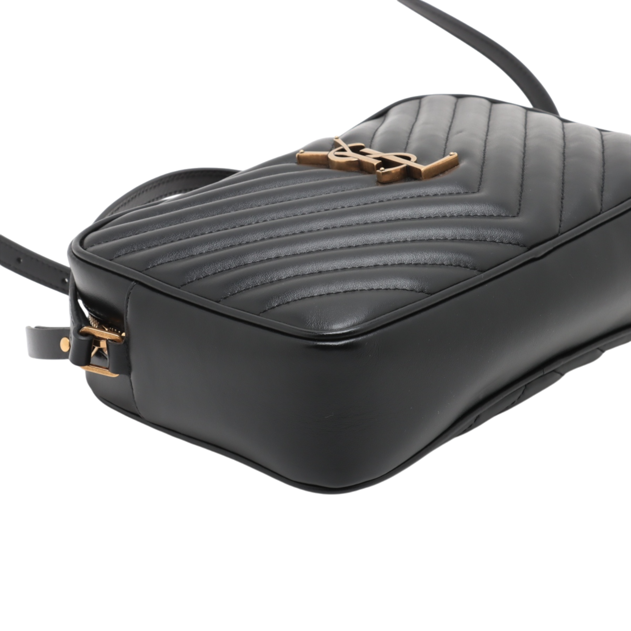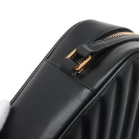 The Lou Camera Bag from Saint Laurent is made of black raffia with black, smooth calfskin trim. It features a flat shoulder strap, a leather tassel and a zip fastening at the top. The Bag can be worn comfortably crossbody.