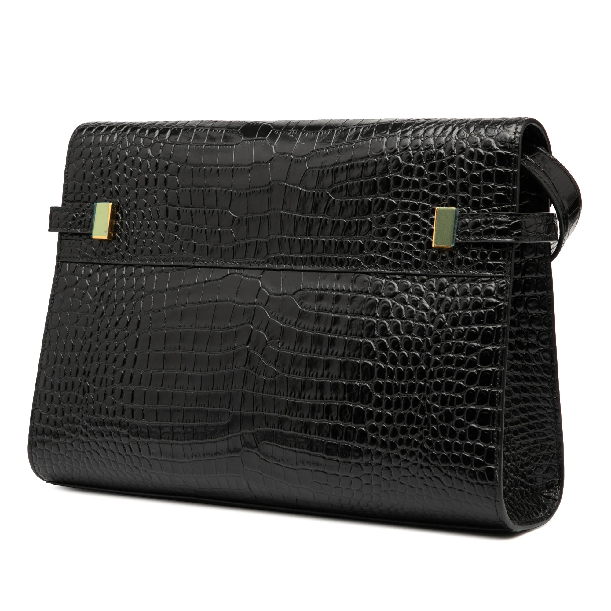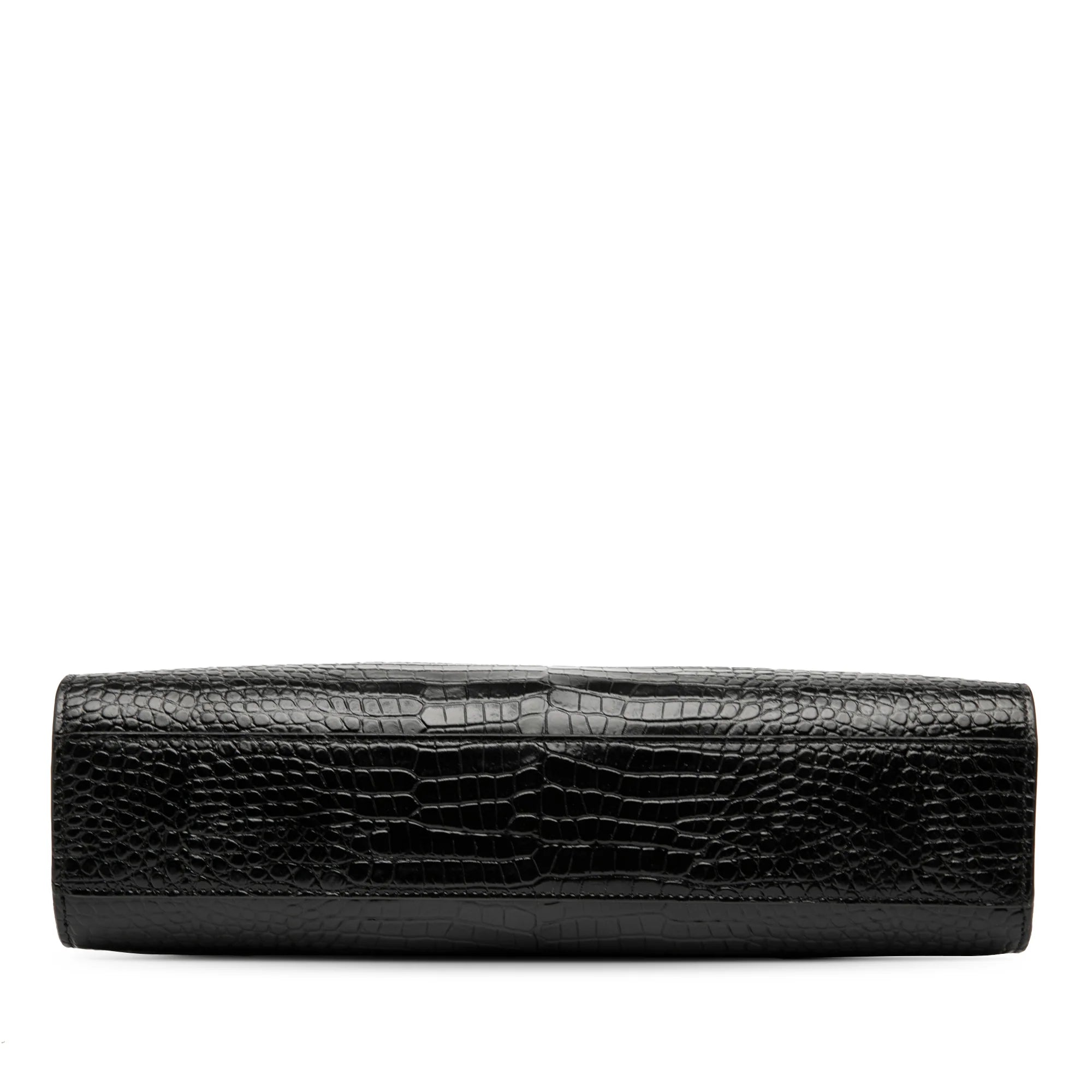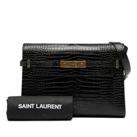 Yves Saint Laurent Manhattan Shoulder Bag Medium Black Shiny Croc Embossed